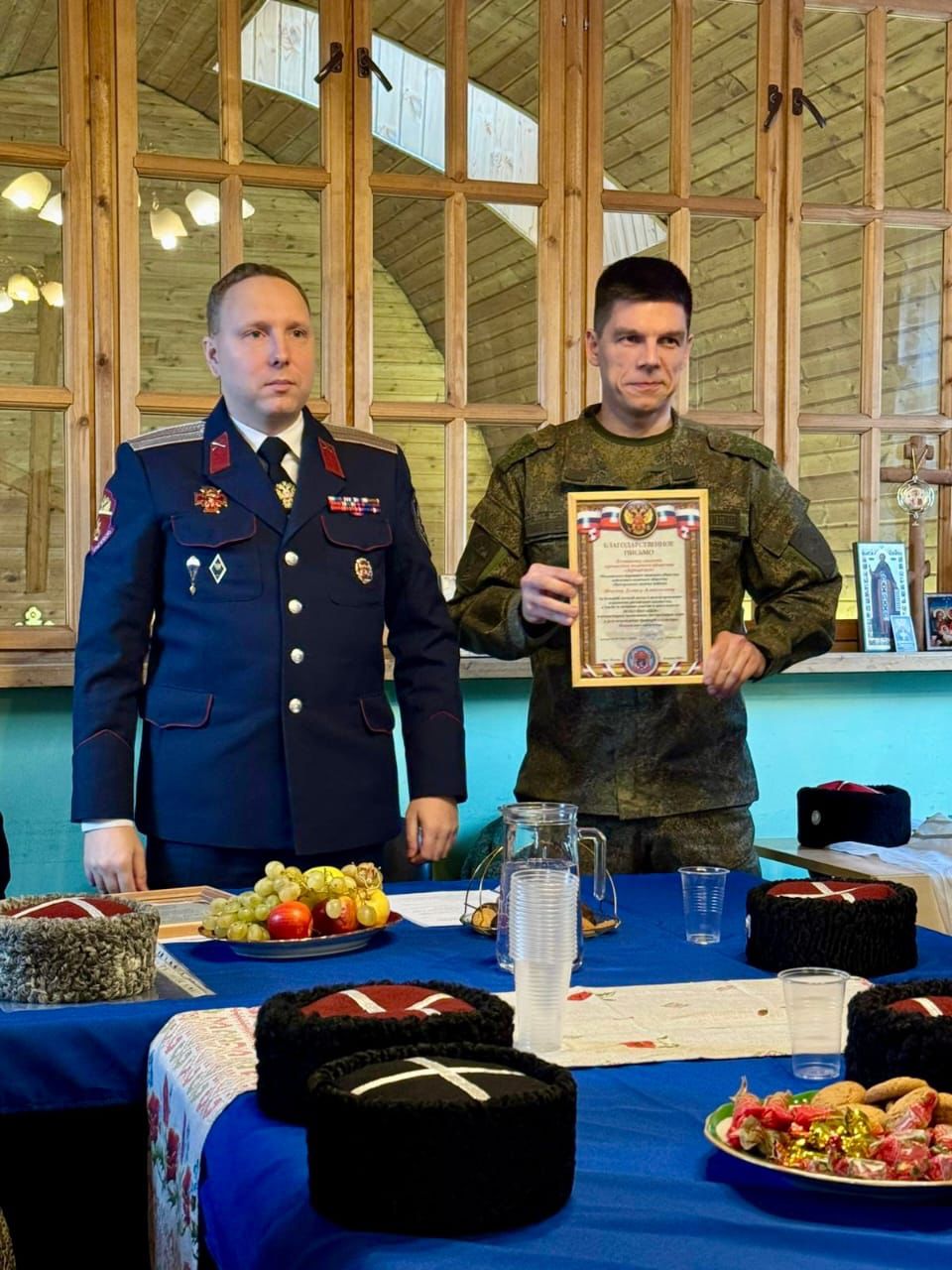 Перед началом собрания – казачьего круга, которое прошло в доме притча, в храме была отслужена панихида по воинам-казакам, погибшим во время СВО. И сейчас много казаков Бутырского хуторского общества исполняют воинский долг в зоне проведения Специальной Военной Операции.