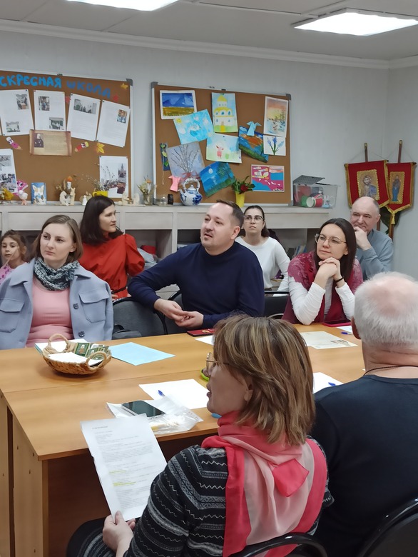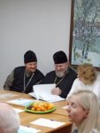 Живую дискуссию и обмен опытом вызвала тема преподавания Закона Божия в воскресной школе. Также была озвучена важная тема организации пространства для пребывания детей на Литургии.