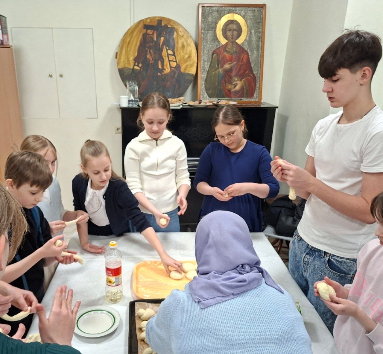 22 марта 2026 года в воскресной школе «Отрада» при храме святителя Николая Мирликийского, Патриаршего подворья в Отрадном воспитанники под чутким руководством педагогов научились печь «жаворонков» в память сорока Севастийских мучеников.
