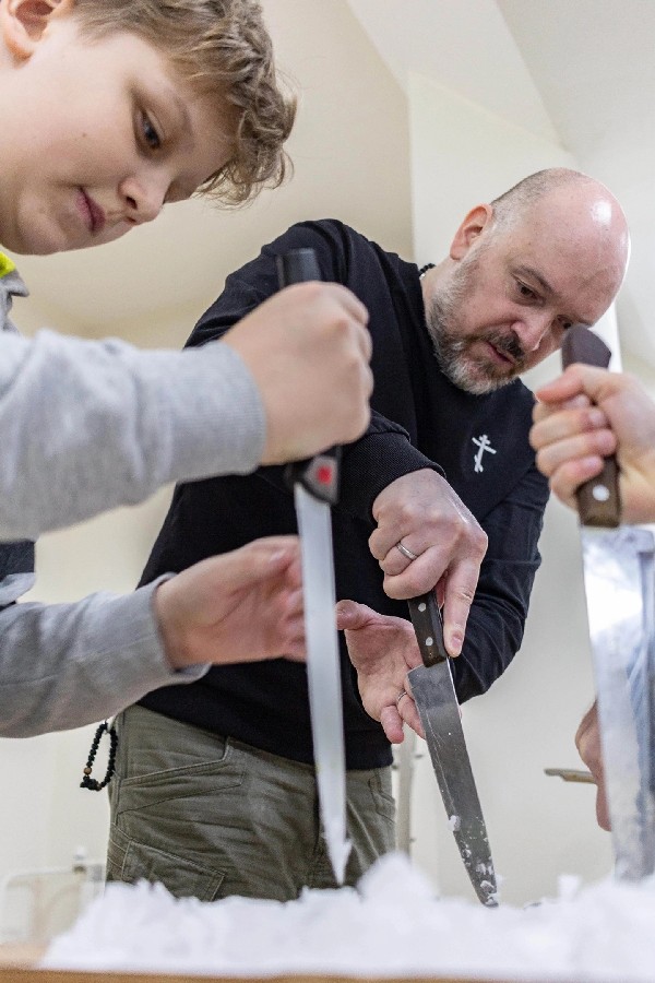 В субботу, 25 марта в храме святых равноапостольных Мефодия и Кирилла в Ростокино прошел общевикариатский молодежный мастер-класс по изготовлению специальных свечей, предназначенных для фронтовых условий. Также в нем приняли участие приходская детская Воскресная школа, храмов Северо-Восточного округа, клирики храма и руководство района. Перед мастер-классом отец Алексий Арефьев совершил молебное пение о призывании помощи Святаго Духа на всякое доброе дело и произнес небольшую проповедь.