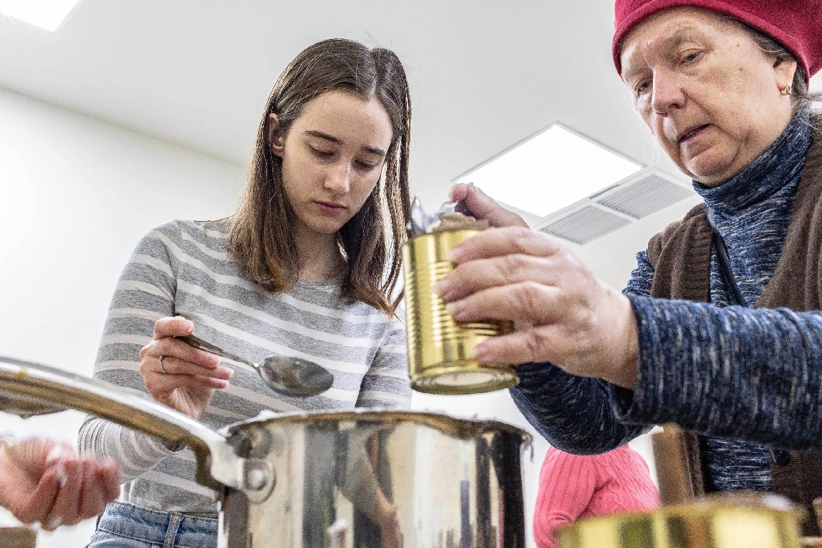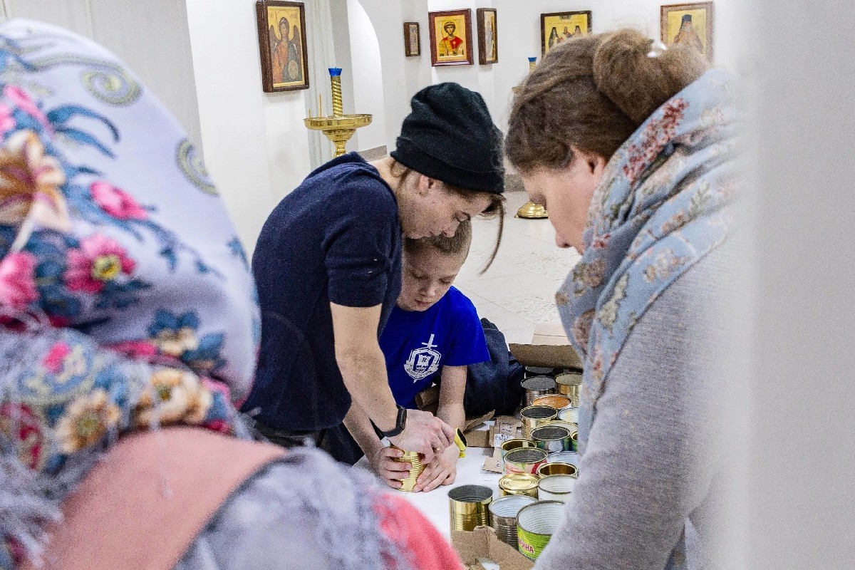 Для изготовления окопных свечей хорошо подходят чистые консервные банки без рисунка с ровными, безопасными краями. В них как можно плотнее вставляется туго скрученный картон, оставшееся место в несколько заходов заполняется разогретым в кастрюле или (старом) чайнике парафином, за которым надо внимательно следить, чтобы он случайно не попал на горелку. За пару часов участники мастер-класса успели изготовить несколько ящиков таких свечей. Для всех желающих сделать их для солдат дома сотрудники храма записали видеоинструкцию.