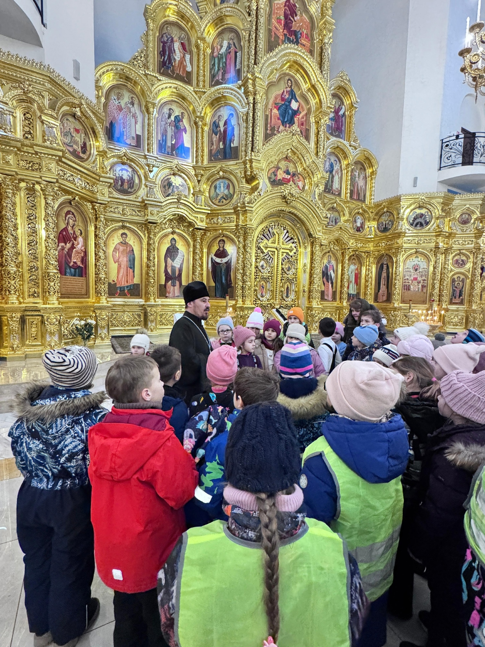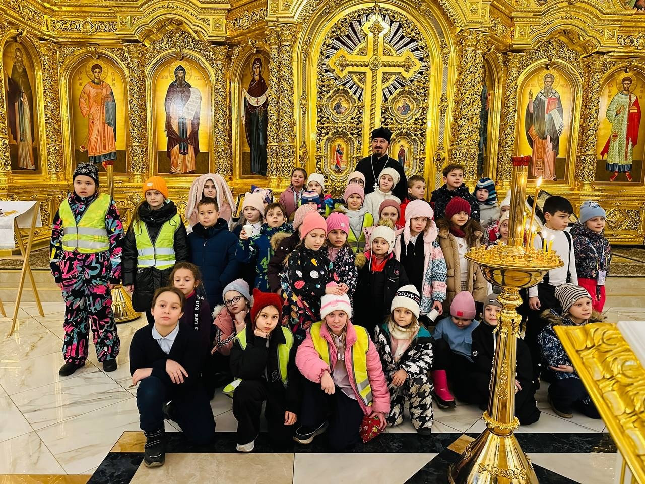 И.о.настоятеля храма иерей Александр Бриленков провел со школьниками просветительскую беседу, рассказал про праздник Крещения Господня, провел экскурсию по верхнему храму, благословил деток на хорошую учебу.