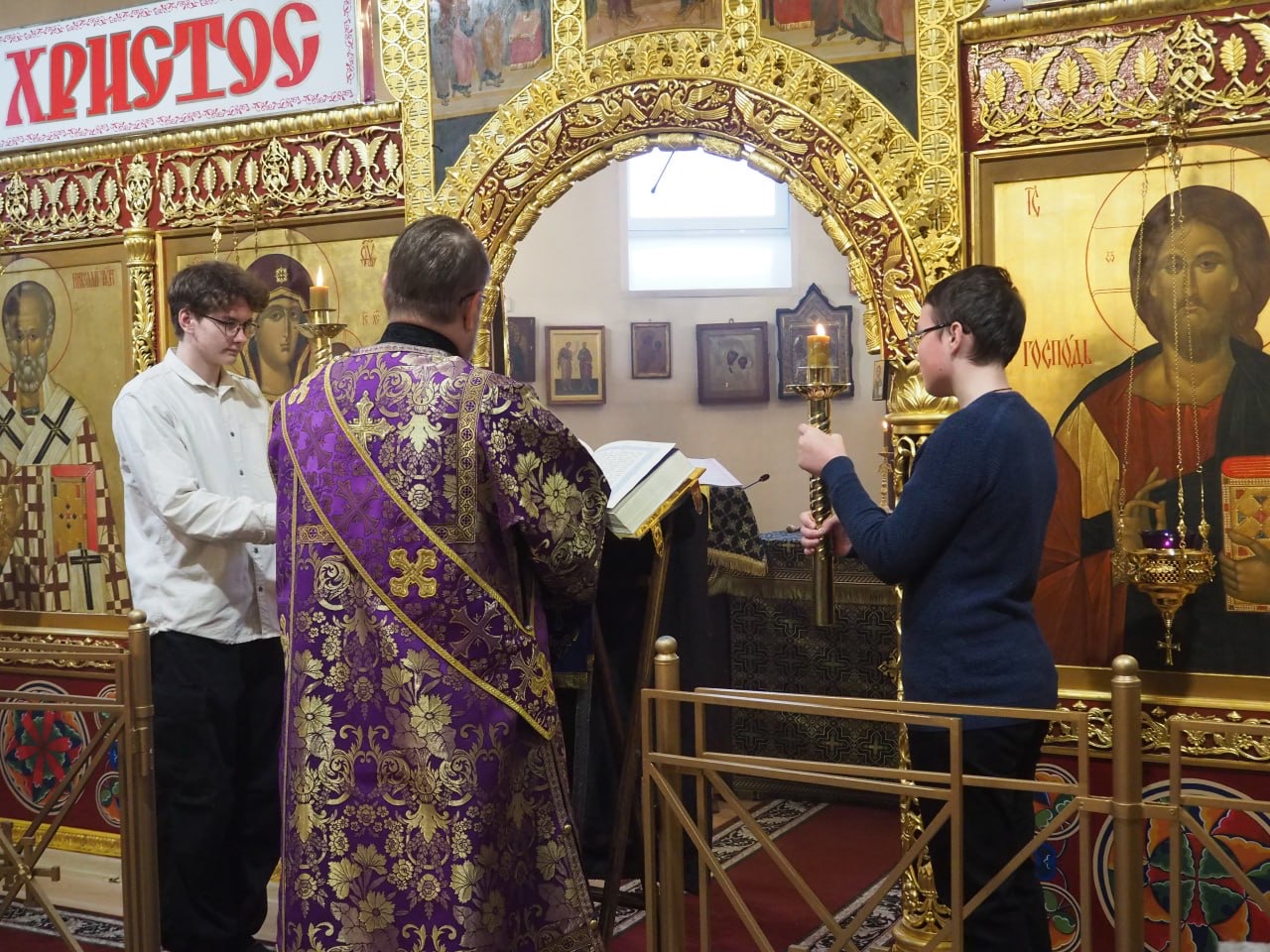 В ходе «детской» литургии мальчики старшей группы воскресной школы помогали в алтаре, а остальные дети, обучающиеся на занятиях по Церковному хору, молитвенно пели на клиросе, младшие воспитанники дежурили у подсвечников. Все дети старались, осознавая важность своего участия в этом священном действии.