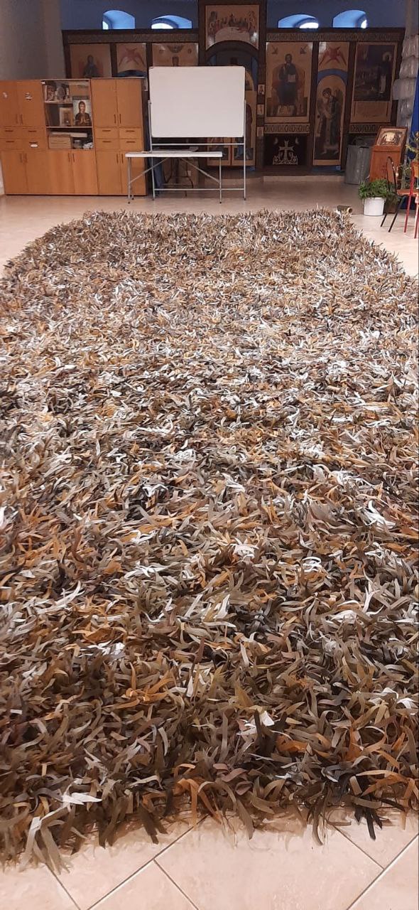 Мастерская «Плетем Победу» открылась в храме в середине сентября. Здесь работает больше 50 добровольцев разных возрастов. За все время они изготовили и отправили на фронт более 60 сетей. Регулярно отправляют теплые носки и сладости для воинов, постельное белье и подушки для госпиталей.