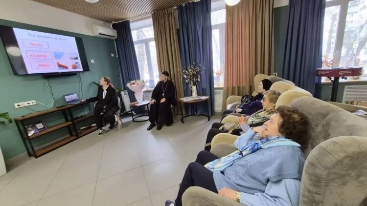 8 апреля 2026 года в рамках миссионерской деятельности храма Тихвинской иконы Божией Матери в Алексеевском иерей Владимир Бычков в Центре Московского долголетия «Алексеевское» Северо-Восточного административного округа г. Москвы провел лекцию на тему: «История и традиции празднования Пасхи».