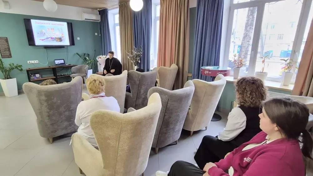 8 апреля 2026 года в рамках миссионерской деятельности храма Тихвинской иконы Божией Матери в Алексеевском иерей Владимир Бычков в Центре Московского долголетия «Алексеевское» Северо-Восточного административного округа г. Москвы провел лекцию на тему: «История и традиции празднования Пасхи».