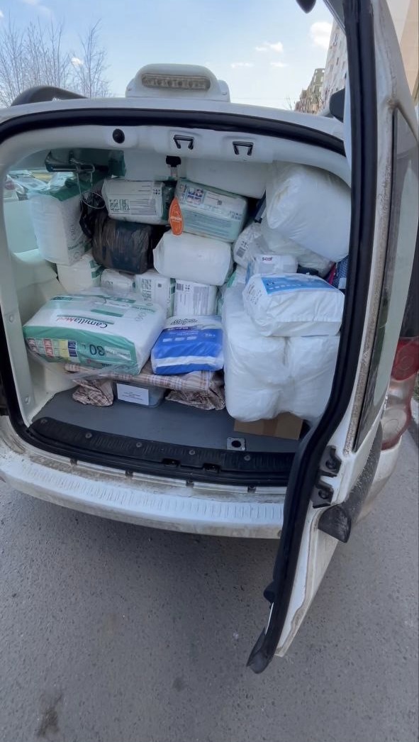 Это мужская одежда, предметы гигиены и сладкие гостинцы для госпиталей Курской области (города Льгов и Рыльск), для недавно организованного госпиталя в г. Краснодон (Луганская область), а также автозапчасти, маскировочные сети, бытовая химия, самодельные сухие супы и каши, инструменты для бойцов на Часовярском направлении и для подразделений, участвовавших в освобождении Курской области.