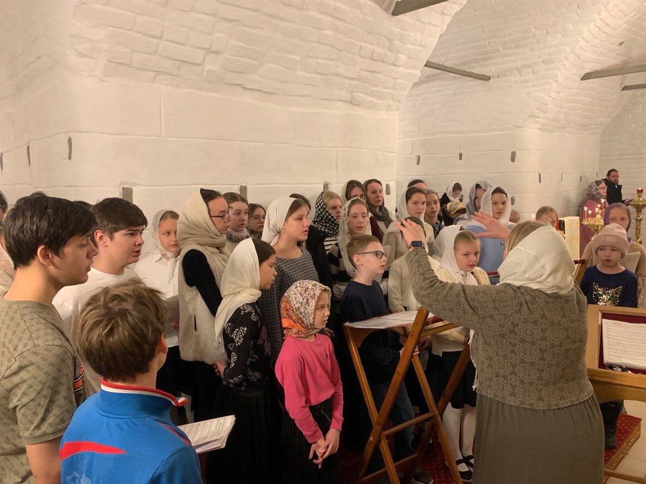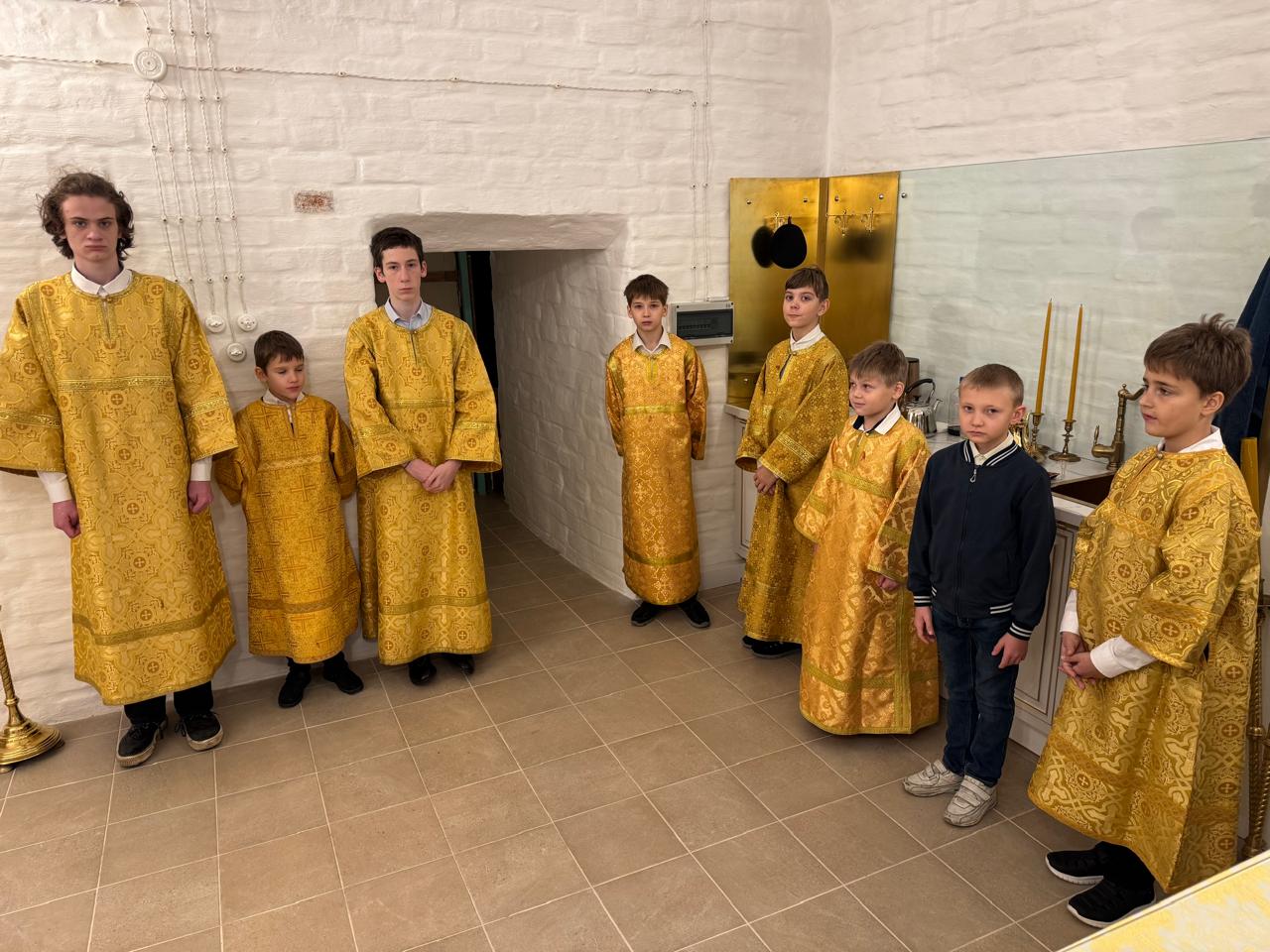 Дети пели на клиросе, а также помогали в алтаре. Ребята были немного взволнованы, потому что такая Литургия — одно из самых ярких событий в учебном году. Все долго готовились на занятиях в хоре, но прекрасно справились с задачей и достойно спели песнопения.