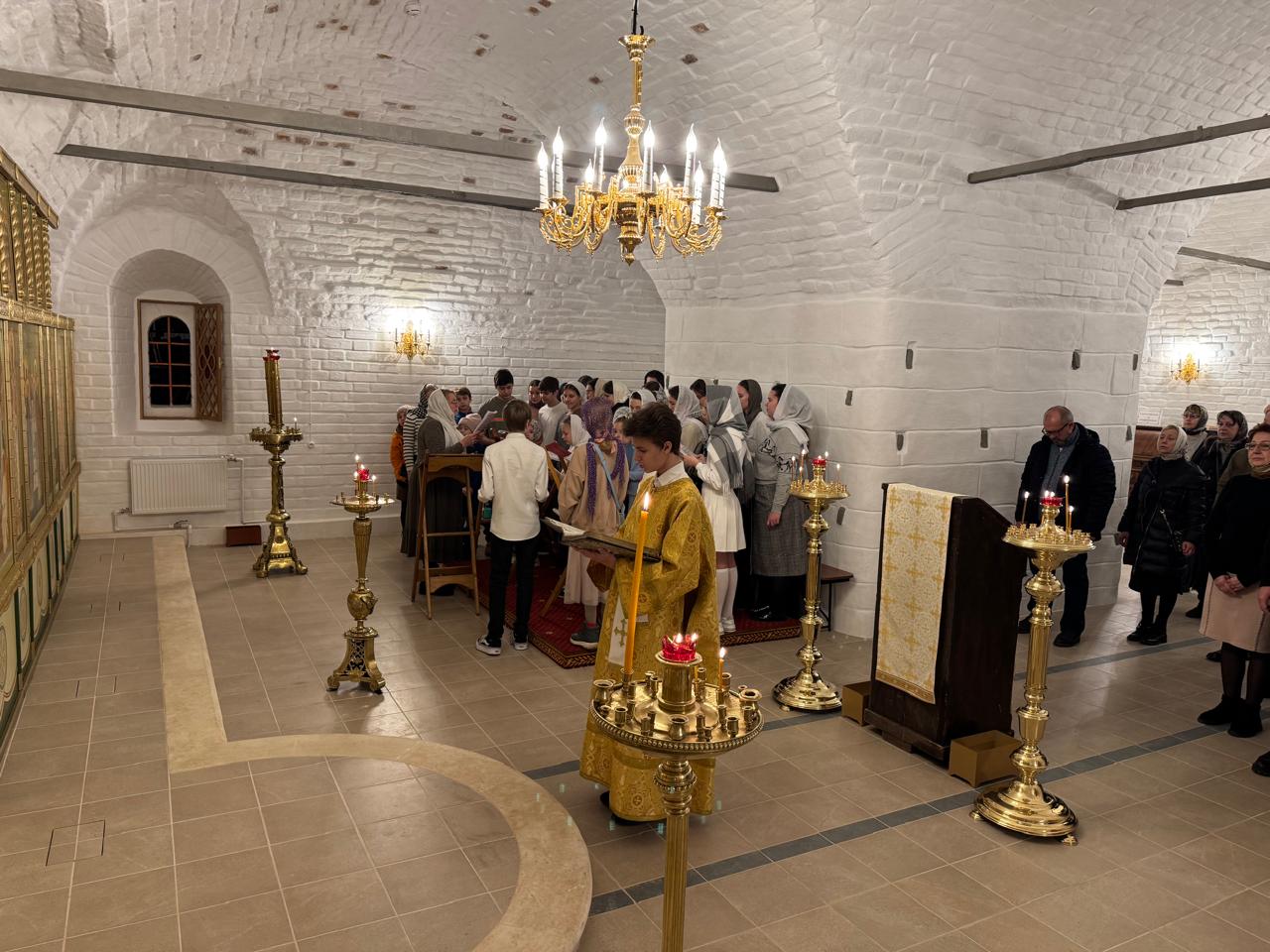 Богослужение прошло в нижнем храме в честь святителя Тихона, патриарха Московского и всея России, который был освящен 27 ноября 2024 года.