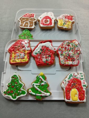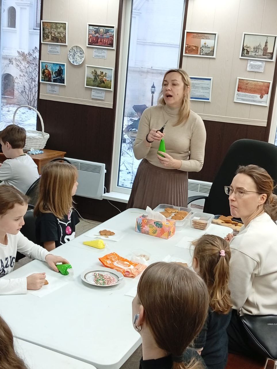 Сначала ребята узнали об истории пряников, традиционных формах и секретах пряничного теста. Пряничные домики и елочки участники расписывали разноцветной сахарной глазурью, оформляли сладкими бусинами, цветами и другими украшениями на свой выбор.