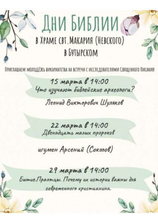 Образовательный лекторий «Дни Библии» пройдет в дни Великого поста для молодежи Северо-Восточного Московского викариатства в храме святителя Макария (Невского), митрополита Московского и Коломенского в Бутырском (Огородный проезд 20/25 строение 1).
