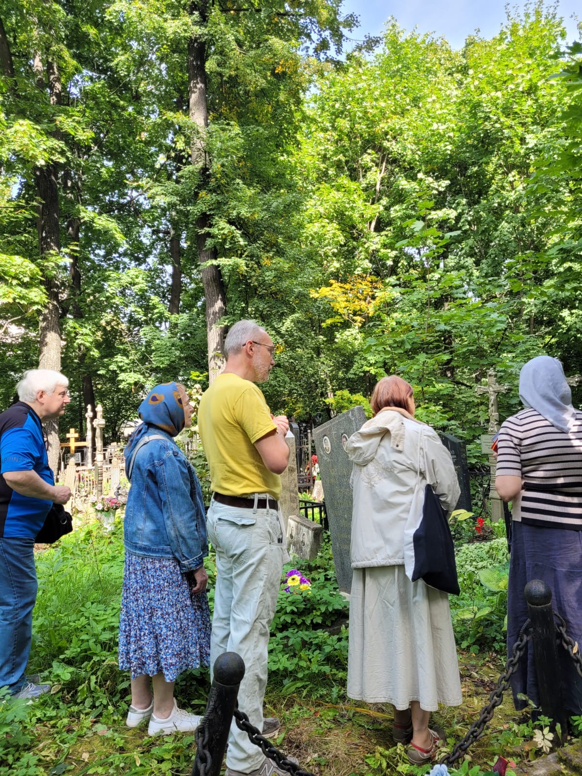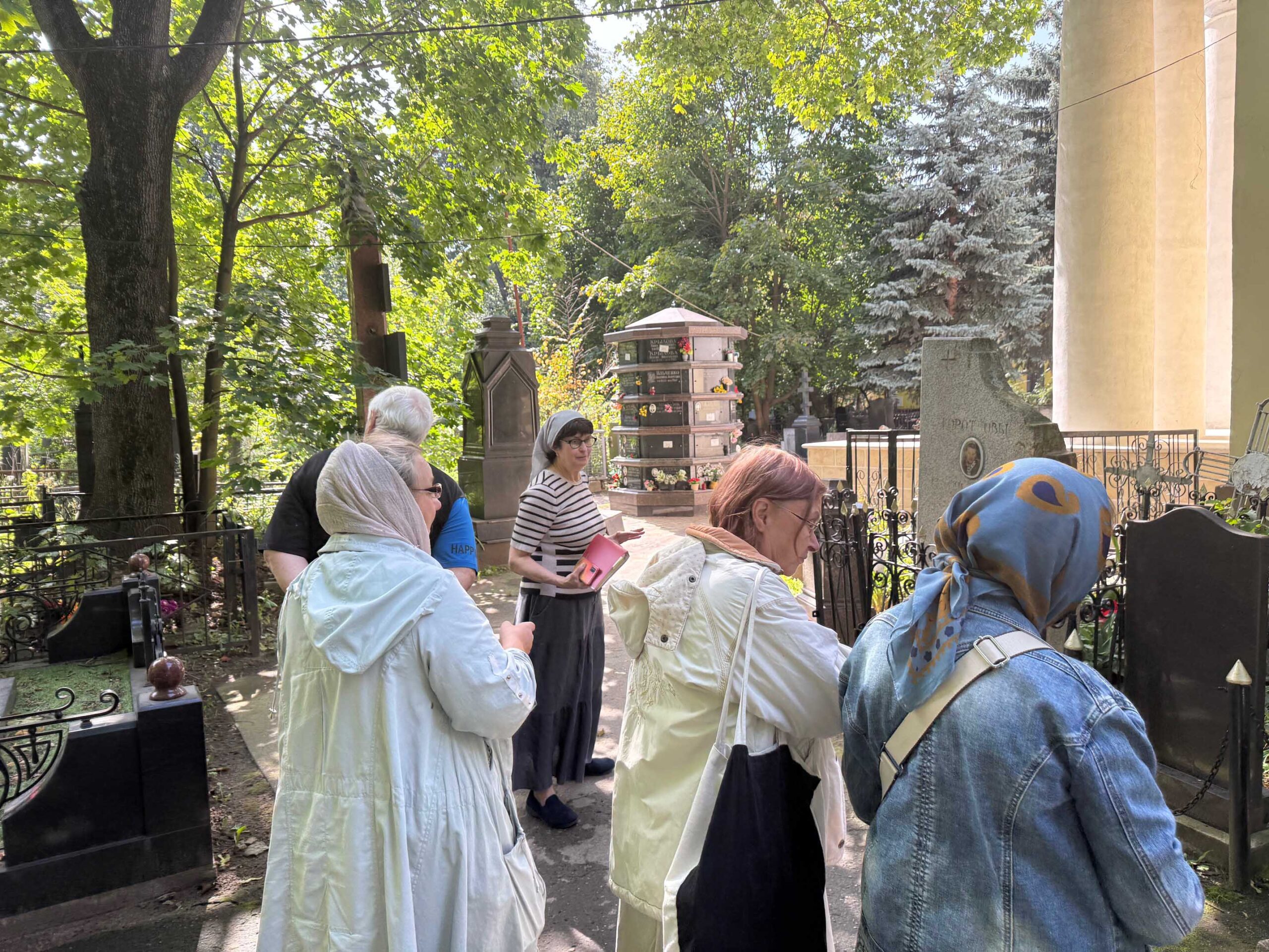30 августа 2025 года состоялась очередная экскурсия по храмам Пятницкого кладбища. Экскурсию провела сотрудник храма Живоначальной Троицы на Пятницком кладбище, составитель книг по истории кладбища и храмов Зоя Романовна Миркина.