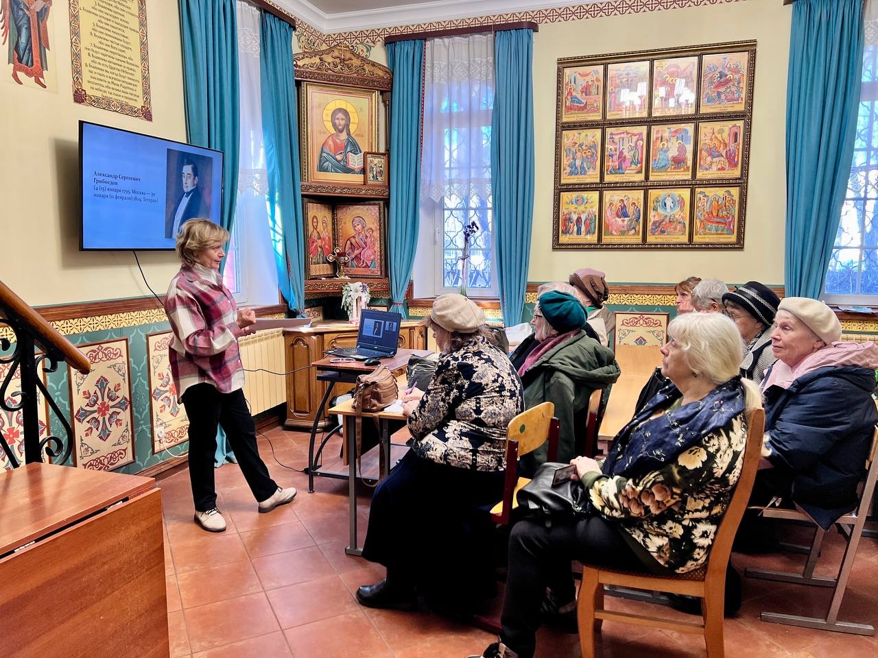 9 марта 2025 года в рамках занятий группы «Московское долголетие» при храме святых мучеников Адриана и Наталии в Бабушкине прошла лекция, просвещенная 230-летию со дня рождения Александра Сергеевича Грибоедова.