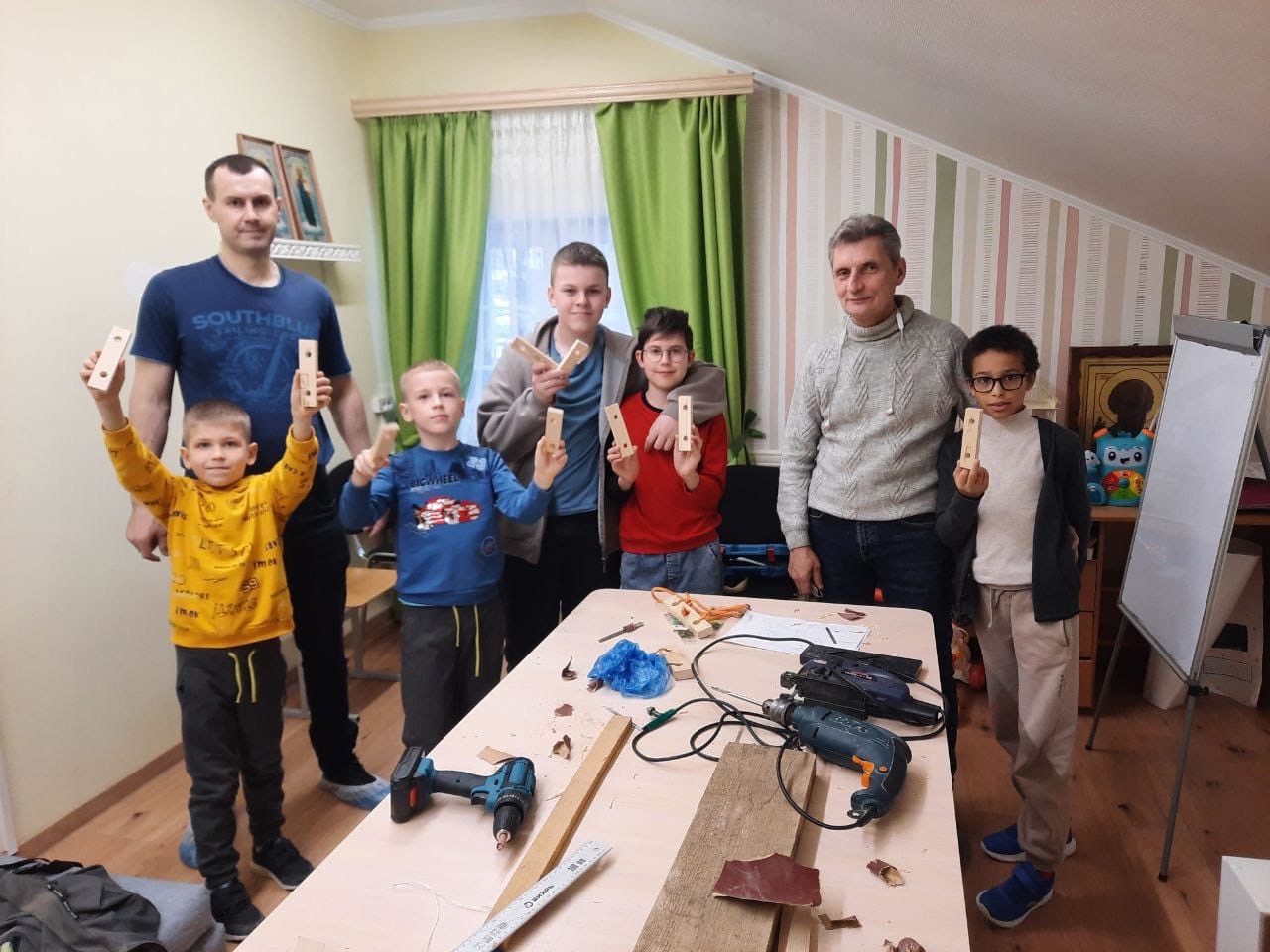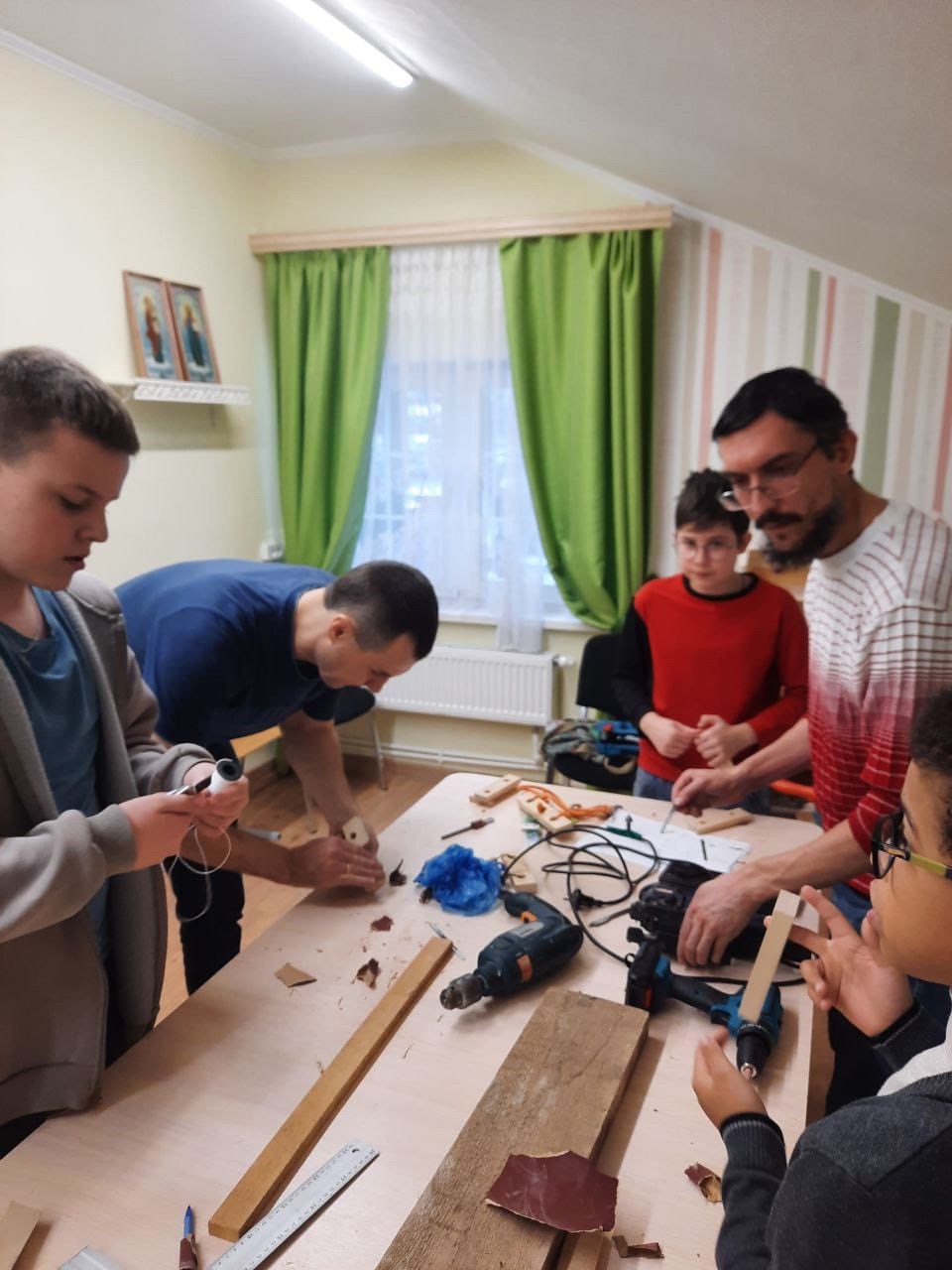 Столярка и электротехника очень актуальны у мальчиков. Тем более, что преподают профессионалы в своем деле. Директор школы с преподавателем недавно ездили по обмену опытом в мастерскую соседнего храма Святых Новомучеников и исповедников Российских, где узнали много нового и интересного и откуда привезли подарок: деревянную головоломку.