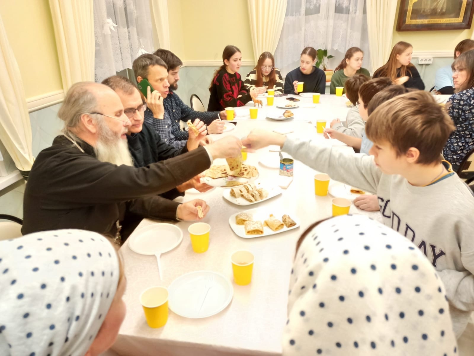 Подростковые пятничные встречи с протоиереем Николаем Крикотой проходят в формате бесед на духовные темы, с чаепитием с угощением, которое готовят старшие девочки.