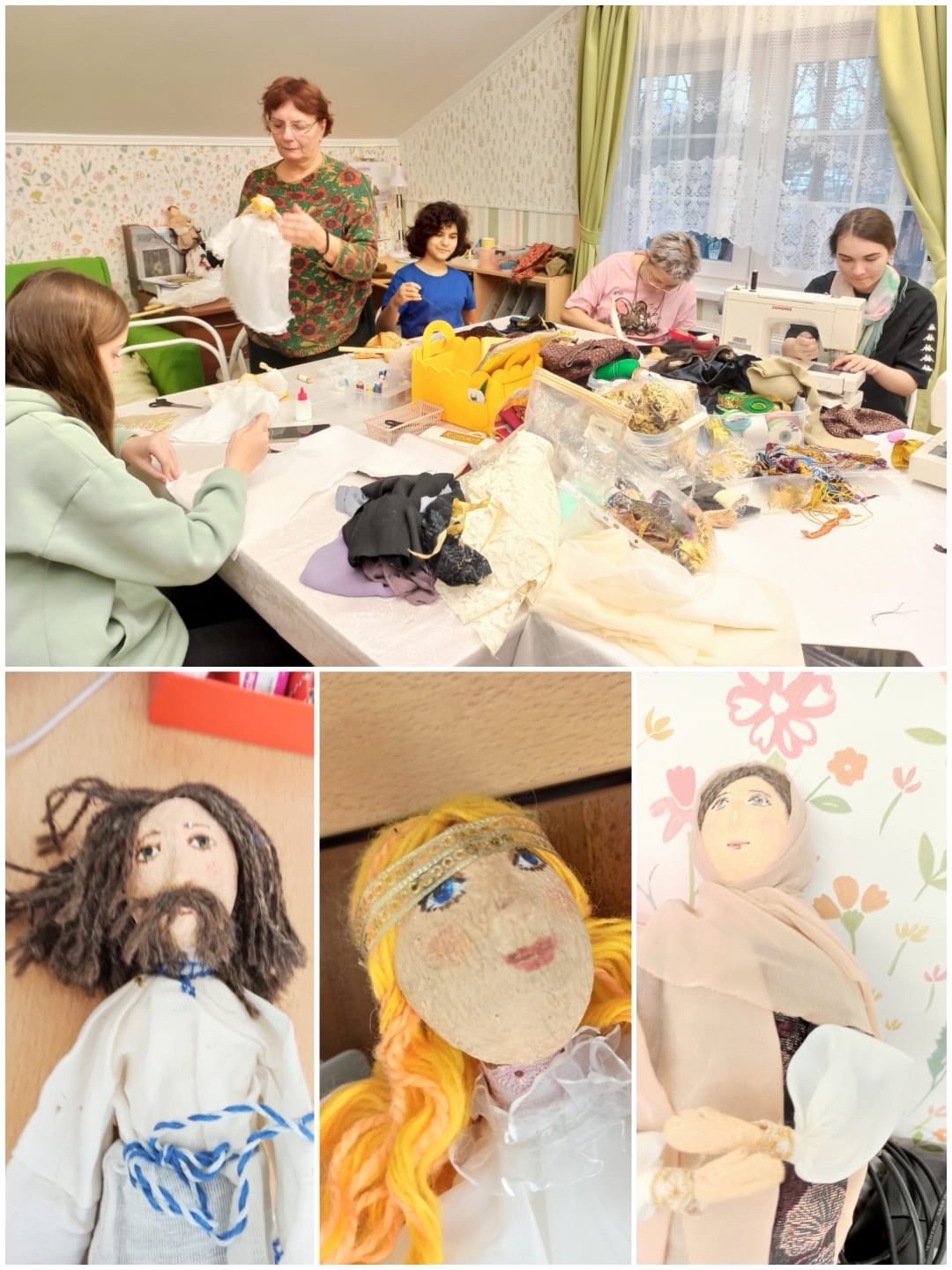 Старшие девочки делают авторские уникальные куклы для Рождественского спектакля с помощью наших педагогов: Риммы Юрьевны, Ольги Хахлевой, Насти Зубаревой, Людмилы Андреевой.