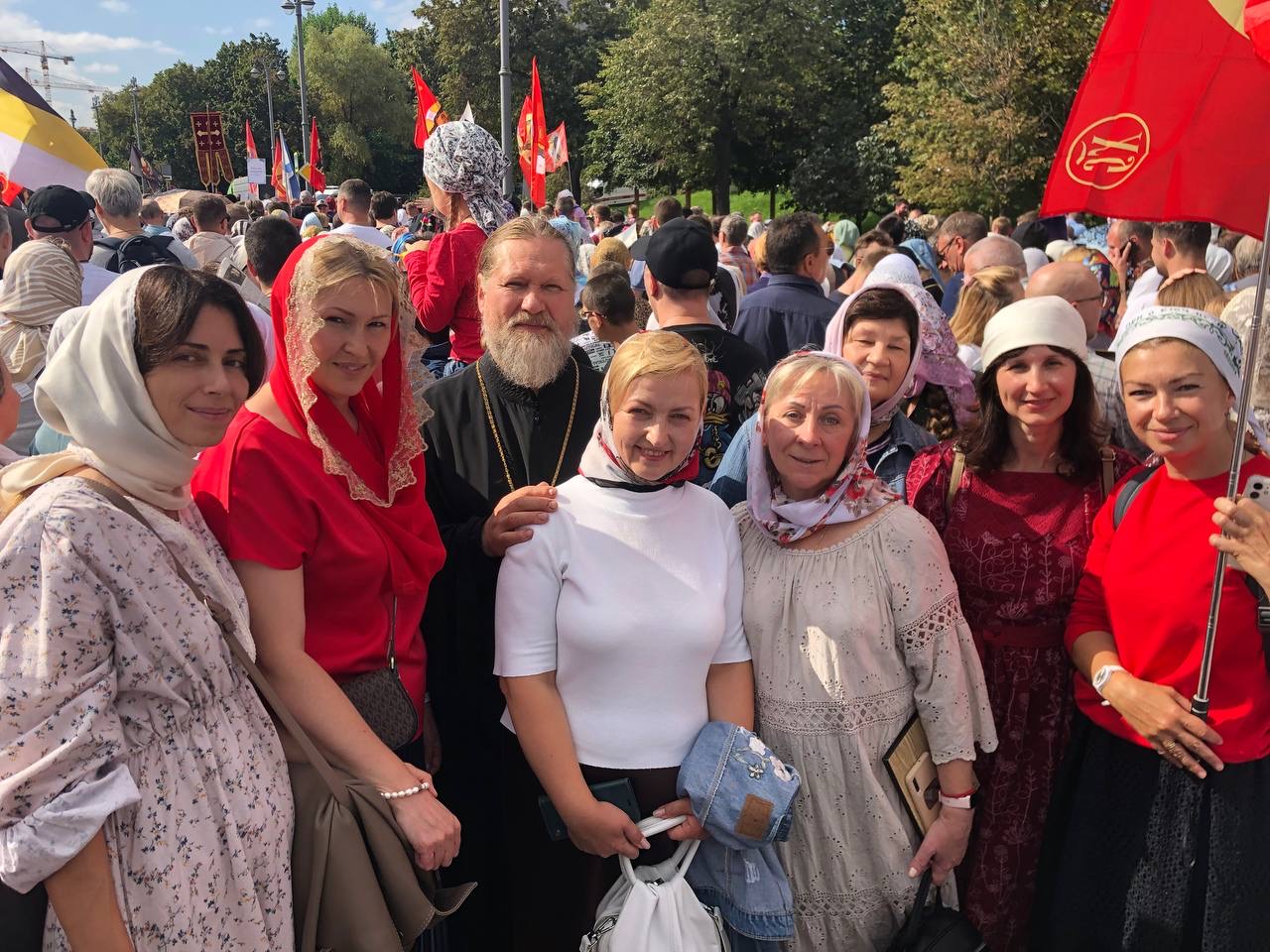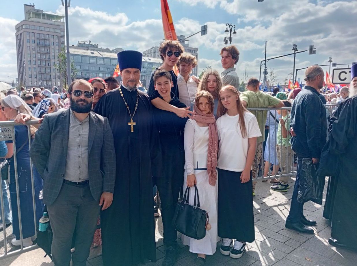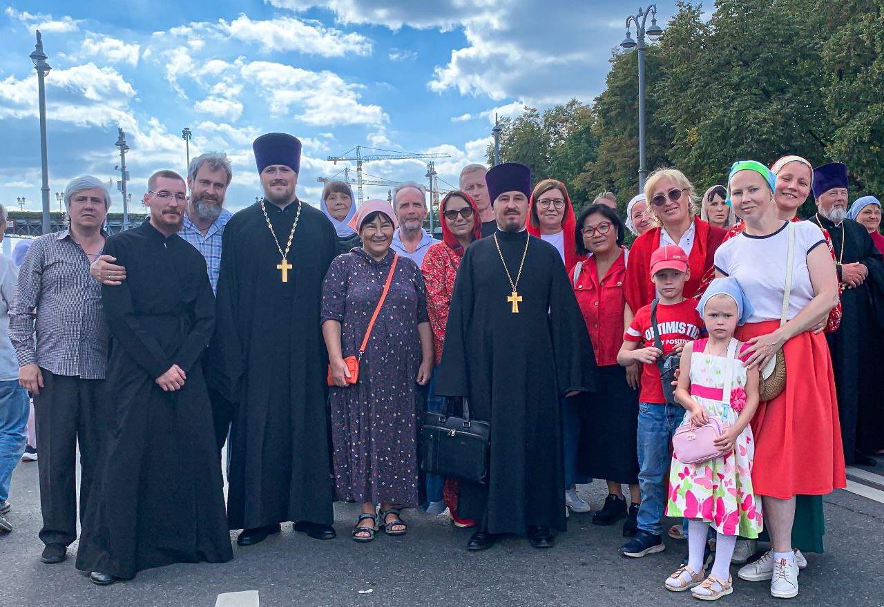 По историческому маршруту вместе со Святейшим Владыкой прошли архиереи и духовенство, монашествующие, члены общественных организаций и многочисленные верующие общим количеством в несколько десятков тысяч человек.