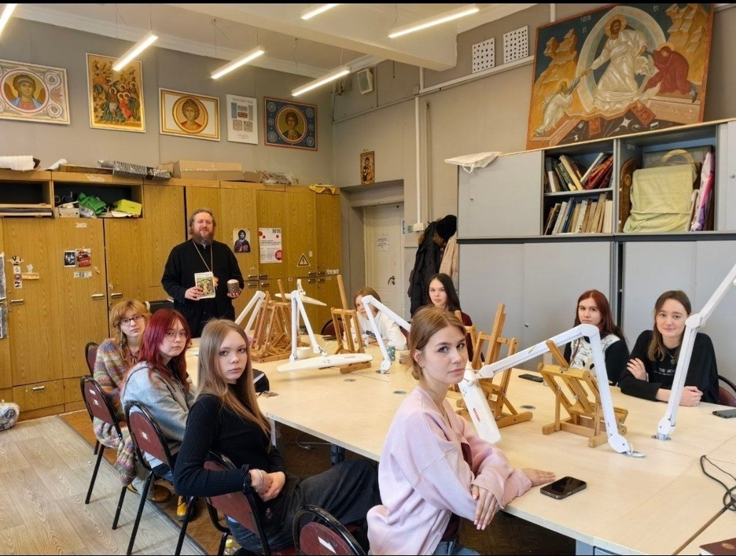 На Светлой седмице клирик храма иконы Божией Матери «Нечаянная Радость» в Марьиной Роще протоиерей Кирилл Шевцов, ответственный в Северо-Восточном Московском викариатстве за работу с вузами и научным сообществом протоиерей Кирилл Шевцов поздравил с Праздником Святой Пасхи и прочитал лекцию о смысле и значении Воскресения Господа нашего Иисуса Христа для студентов и преподавателей Колледжа дизайна и декоративного искусств имени С. Г. Строгонова.