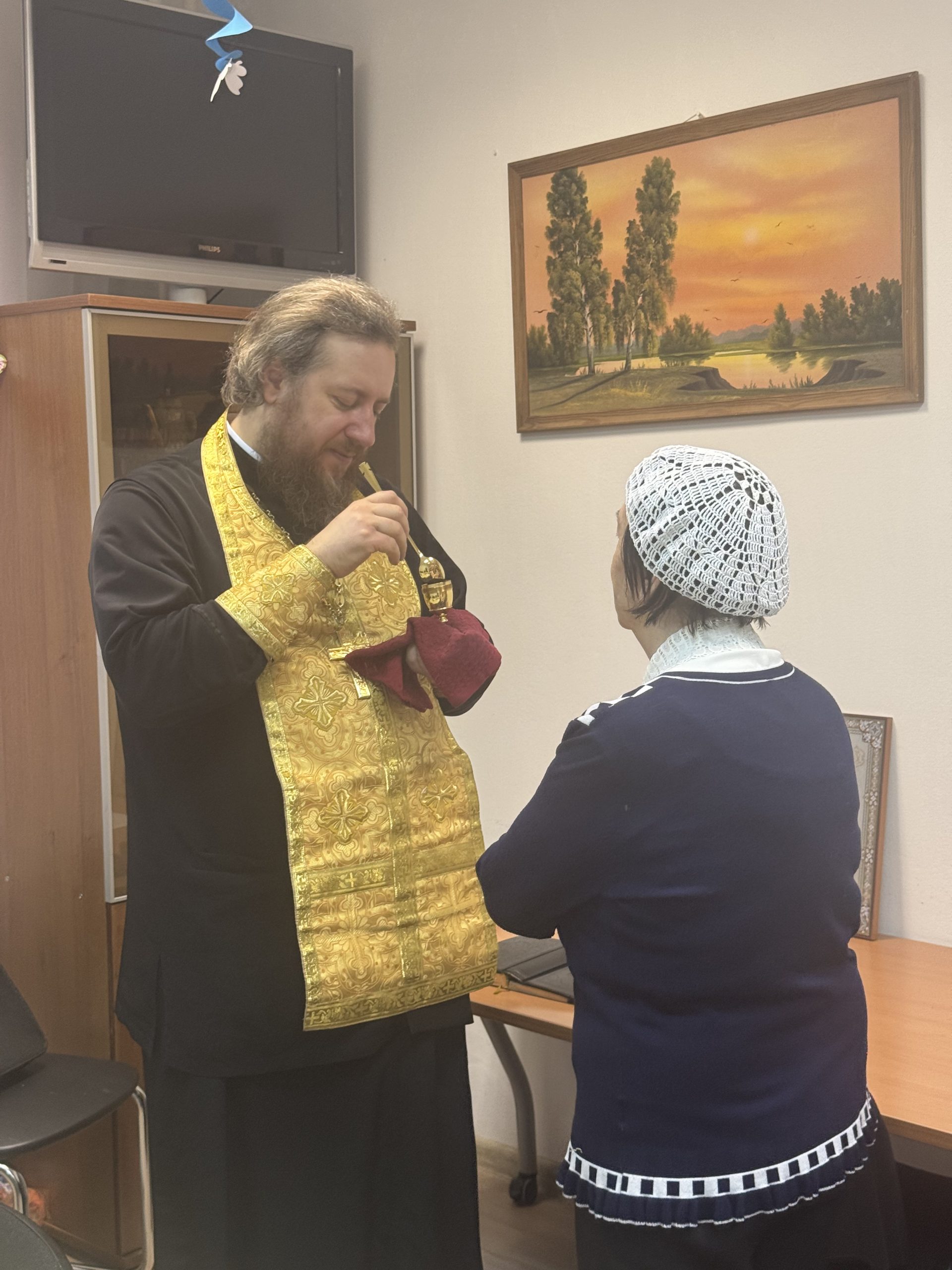 28 декабря 2024 года клирик храма иконы Божией Матери «Нечаянная Радость» в Марьиной Роще протоиерей Кирилл Шевцов совершил в помещении местной районной организации инвалидов «Марфино» таинства Исповеди, Причастия и Соборования для людей, не имеющих возможности посещать храм.