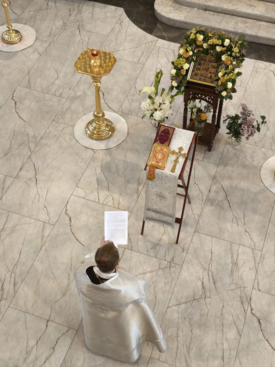 Богослужение совершил клирик храма — иерей Николай Балан, ответственный за духовное окормление в Национальном исследовательском Московском государственном строительном университете.
