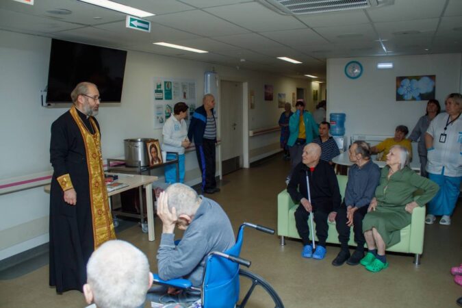 На разных этажах были отслужены молебны — где простые, а где и с освящением воды, на которых помолились Богу, Богородице, Архистратигу Михаилу за себя и близких, и всех тружеников и жителей социального дома.