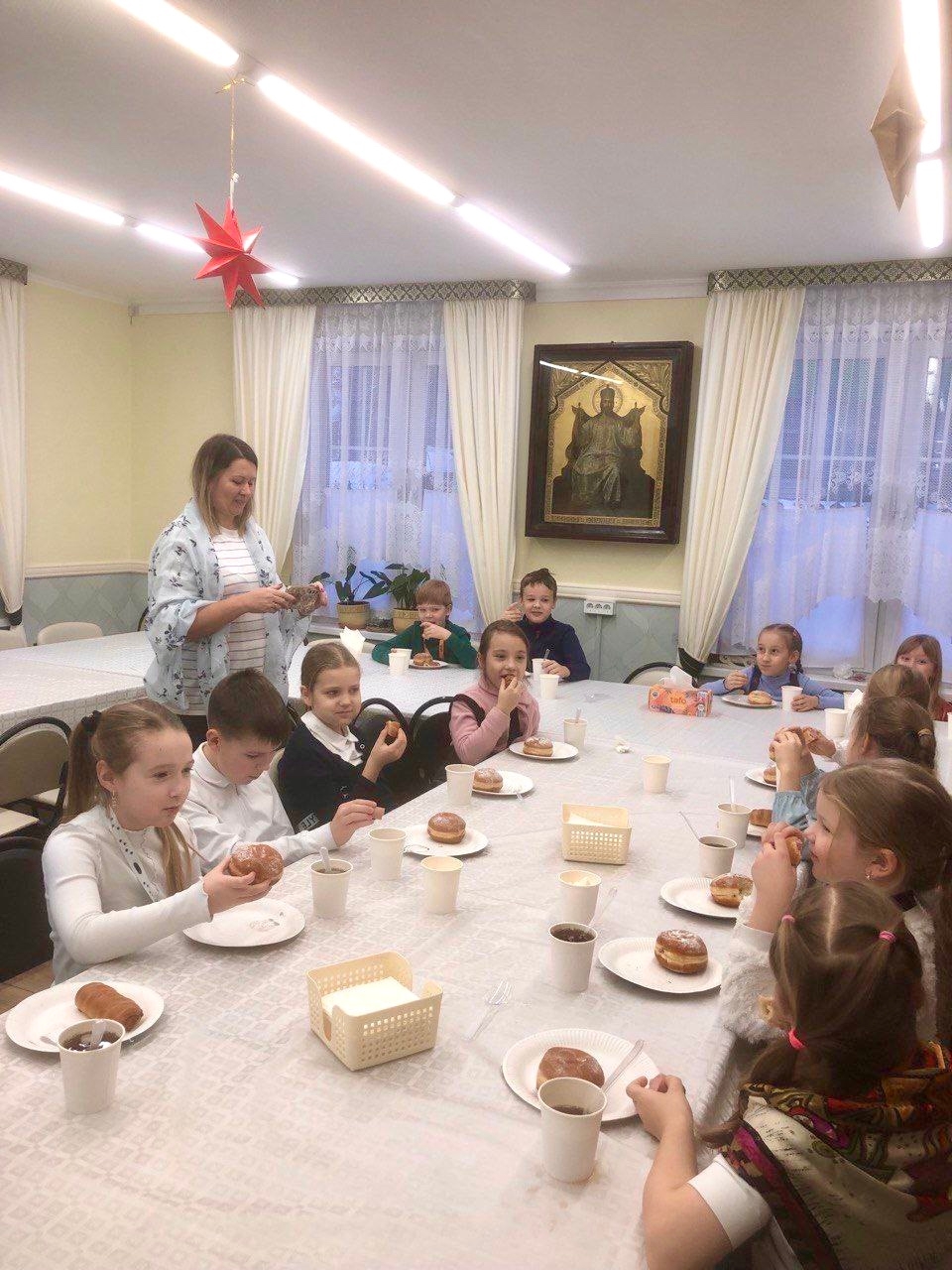 А после беседы со священником детей ждал чай в воскресной школе, а потом была беготня по сугробам, окружающим территорию храма.