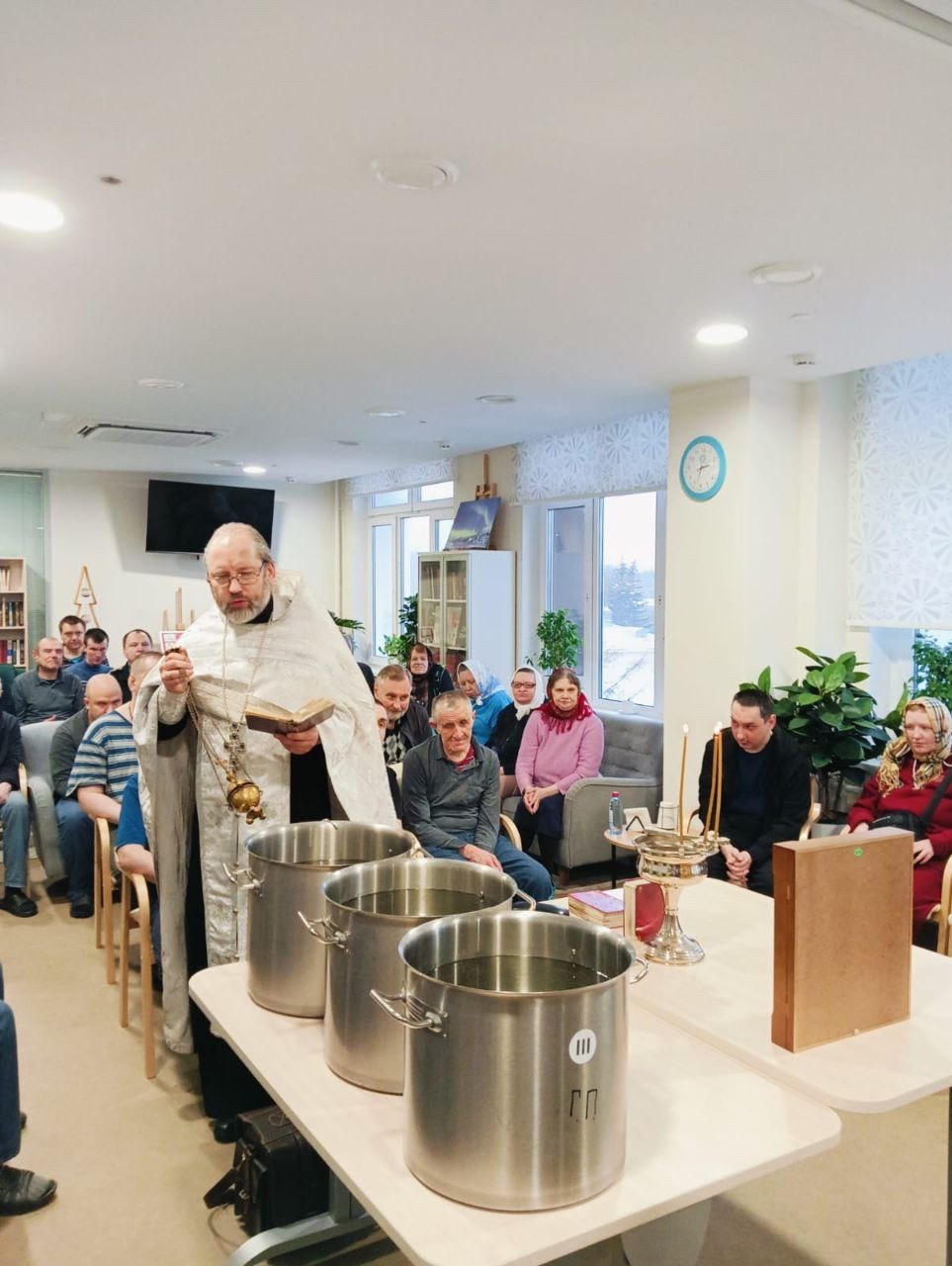 19 января 2026 года клирик храма святых мучеников Адриана и Наталии в Бабушкине священник Феодор Сидоров принес радость праздника Крещения Господня в социальный дом «Ярославский».