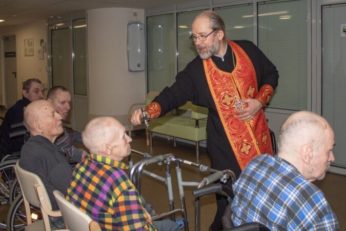 Клирик храма святых мучеников Адриана и Наталии в Бабушкине поздравил проживающих в социальном доме «Ярославский» с Пасхой