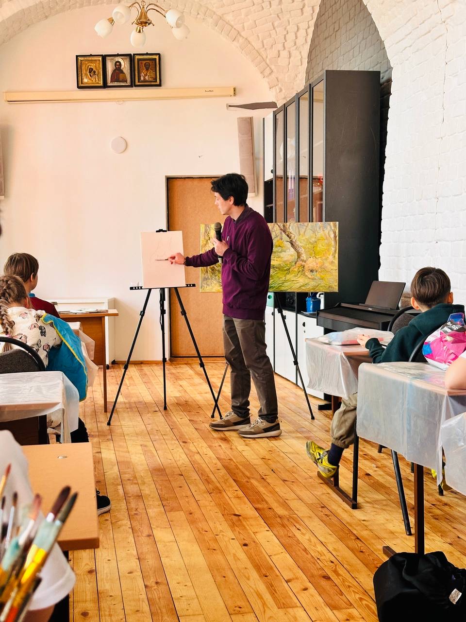 16 ноября 2025 года в Центре духовного развития при храме Тихвинской иконы Божией Матери в Алексеевском состоялись лекция и мастер-класс художника Федора Усачева.