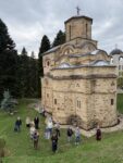 Мощные словно крепостные башни колокольни, альпийские луга вокруг, подъем по осеннему лесу к парящему на скалах скиту святителя Савввы, шедевральная красота фресок монастырей Сопочаны и Студеница (Всемирное культурное наследние ЮНЕСКО), а главное, воскресная Божественная Литургия в уединенном 800-летнем монастыре «Придворица» — все это навсегда останется в сердцах московских паломников.