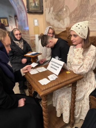 В Великую Субботу приходской подростковый клуб храма Положения Ризы Пресвятой Богородицы во Влахерне, в Леонове провёл миссионерскую викторину для жителей района, пришедших освятить пасхальные яства.