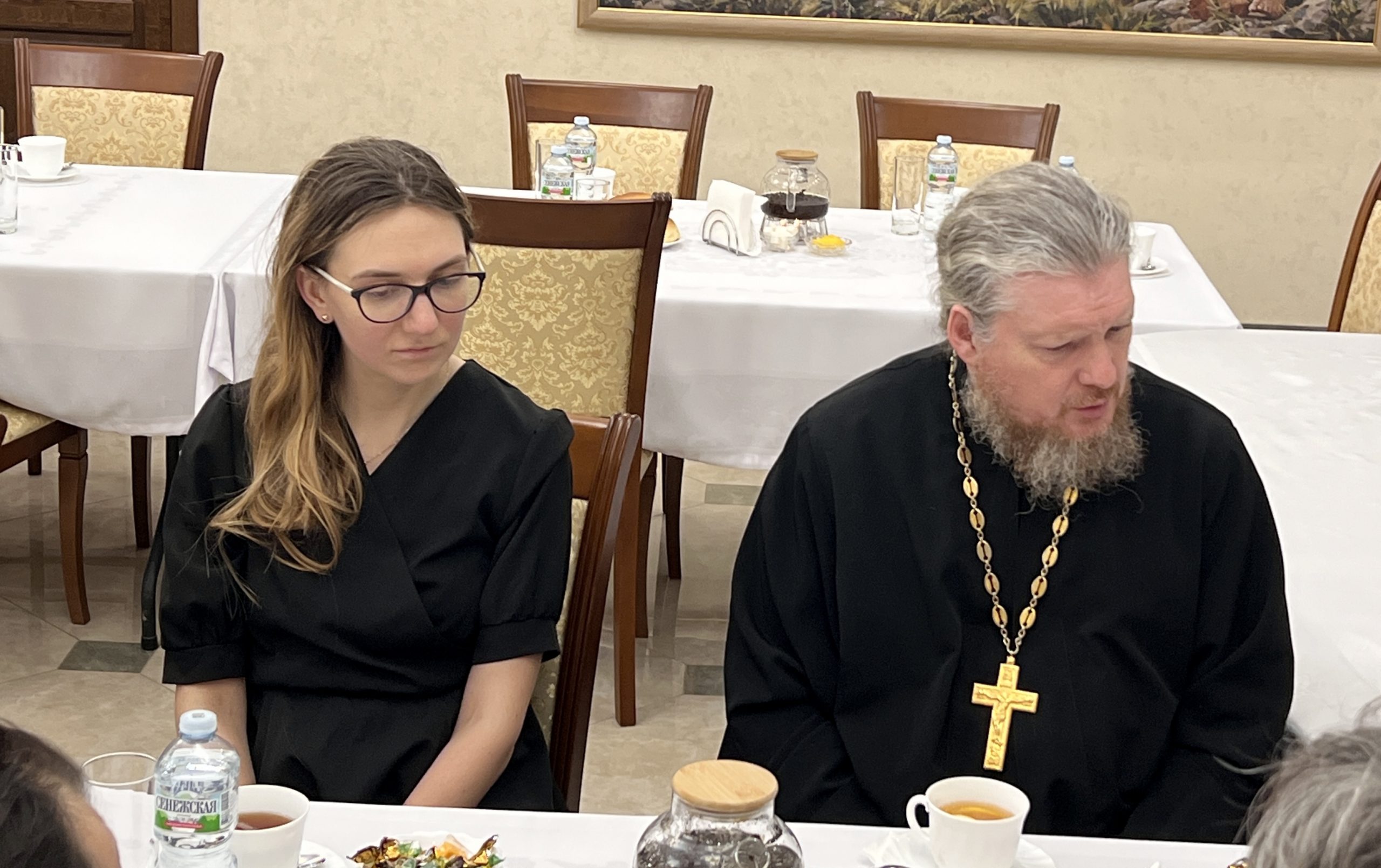 На встрече также присутствовали: настоятель храма Торжества Православия, Патриаршего подворья в Алтуфьеве, руководитель направления помощи военным госпиталям от Синодального отдела по церковной благотворительности и социальному служению протоиерей Сергий Кляев; ответственный за социальную деятельность в Северо-Восточном викариатстве, и.о. настоятеля храма святого благоверного князя Димитрия Донского в Раеве иерей Евгений Суслов и клирик храма святителя Николая Мирликийского в Отрадном иерей Владимир Толстой.