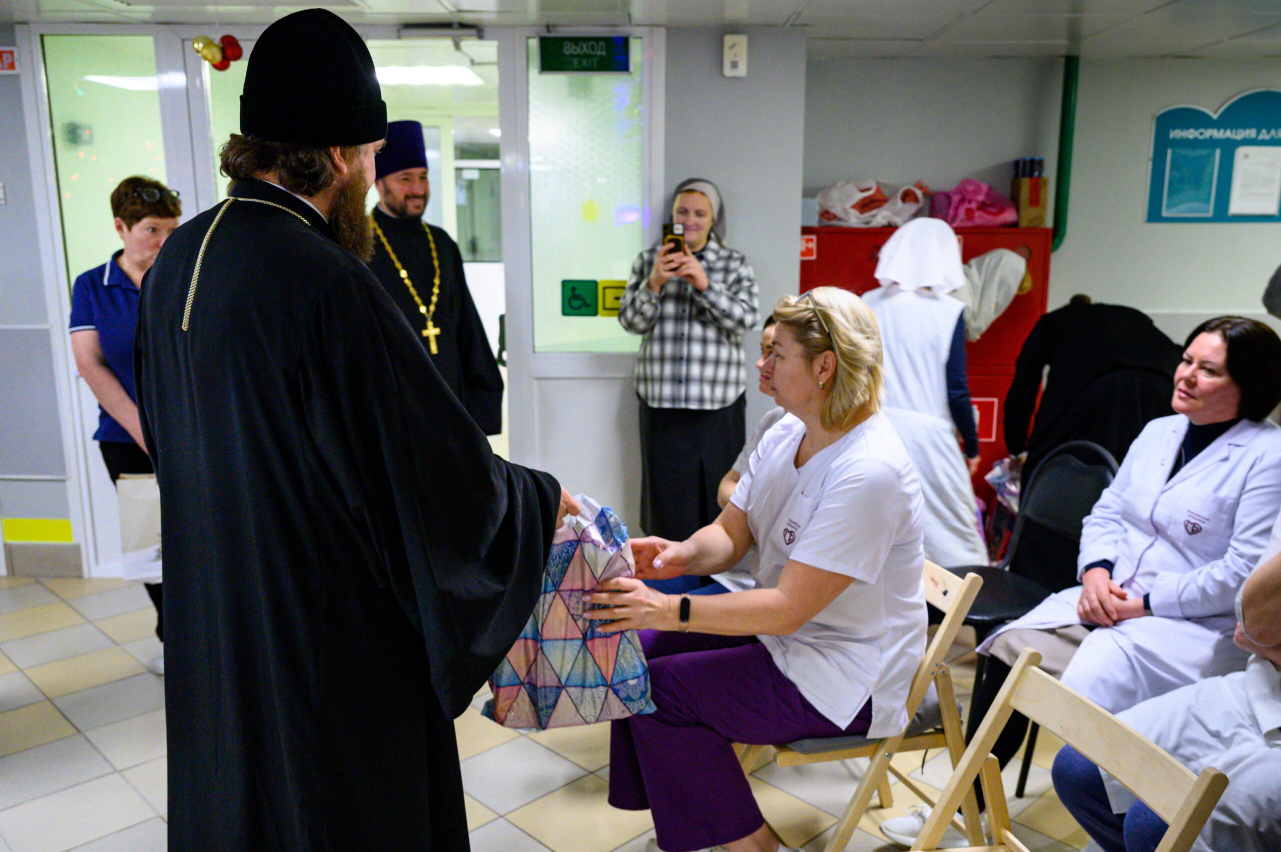 По окончании концертной программы архипастырь вместе с ответственным за социальное служение в Северо-Восточном викариатстве, и.о. настоятеля храма святого благоверного князя Димитрия Донского в Раеве иереем Евгением Сусловым и хором обошли палаты отделения, поздравили маленьких пациентов с праздником Рождества Христова, вручив каждому рождественский подарок.