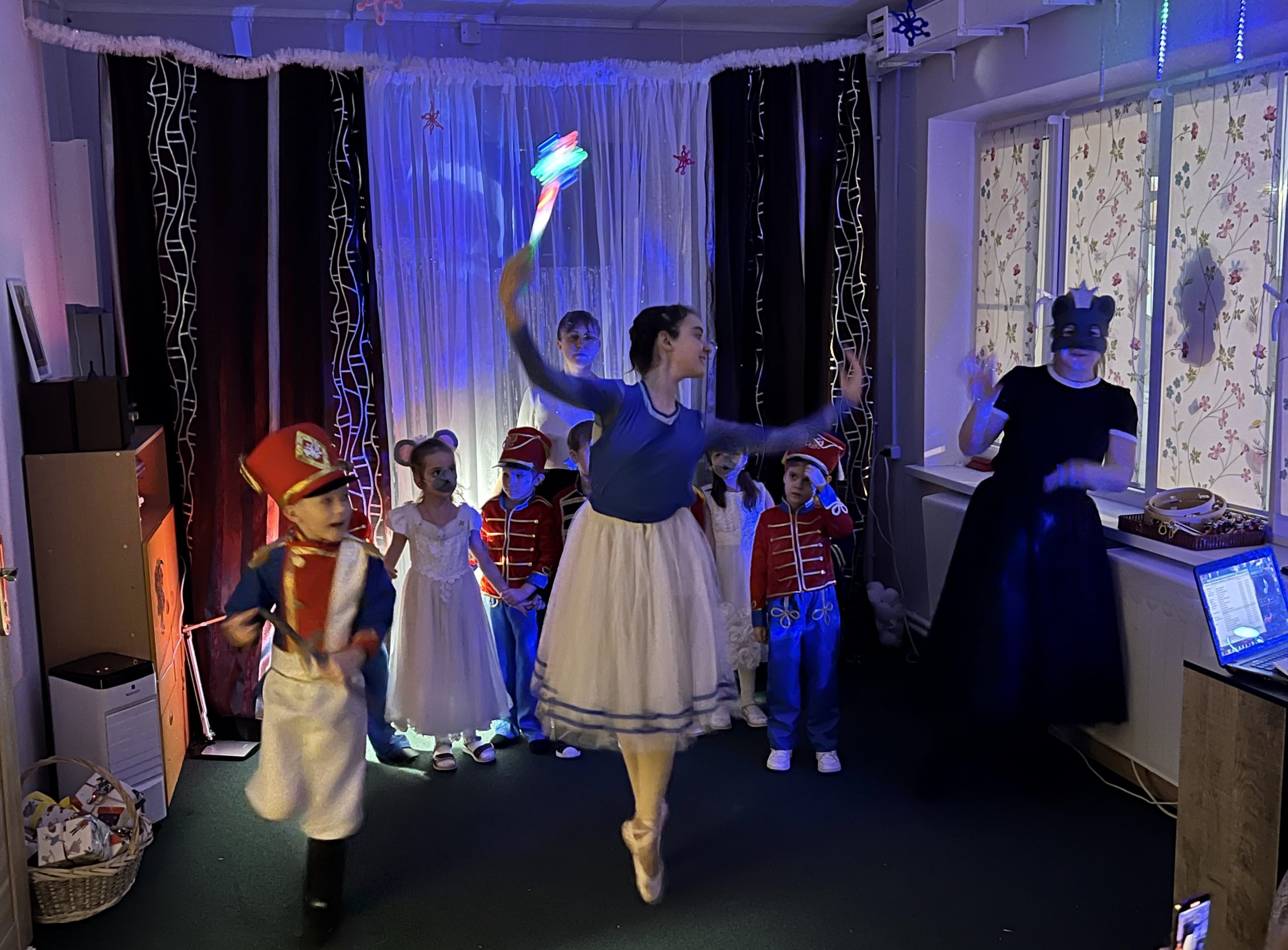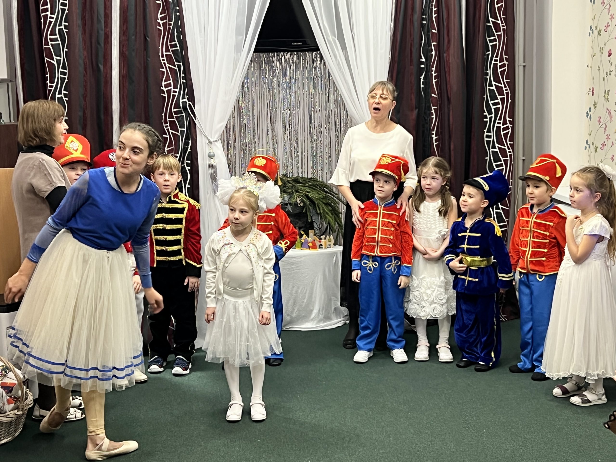 Дети под руководством воспитателей подготовили музыкальный костюмированный спектакль «Щелкунчик». Маленькие воспитанники задолго до праздников начали учить свои роли, тексты песен и стихов. Благодаря домашней уютной обстановке праздник получился очень теплым, семейным.