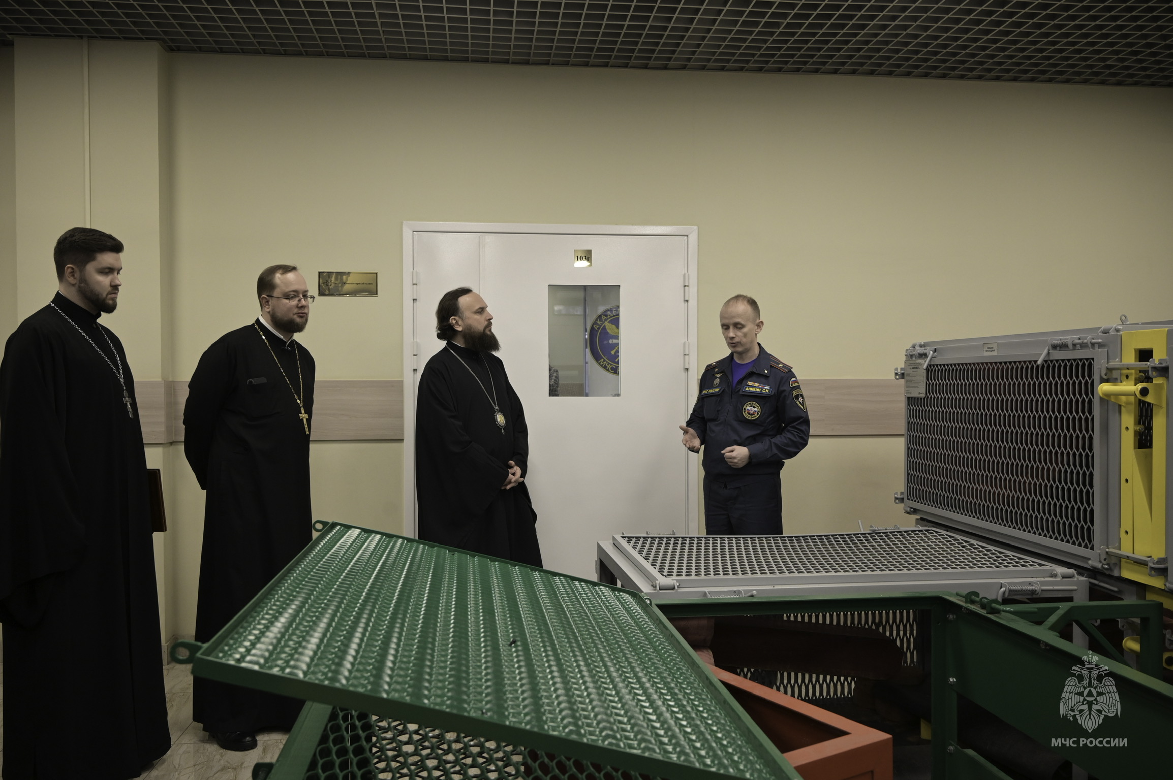 Во время посещения, в котором также приняли участие и.о. руководителя секретариата Северо-Восточного викариатства иерей Сергий Бычков и клирик храма Тихвинской иконы Божией Матери, Патриаршего подворья в Алексеевском города Москвы иерей Андрей Титушкин, ответственный за духовное окормление Академии ГПС МЧС России, заместитель начальника Академии ГПС МЧС России по работе с личным составом Александр Гусев ознакомил гостей с основными объектами учебно-материальной и научно-технической базы Академии: учебно-тренировочным и спортивным комплексами, учебным центром управления в кризисных ситуациях, музеем, выставочным центром, в котором представлены новейшие разработки ученых вуза, а также именными аудиториями.