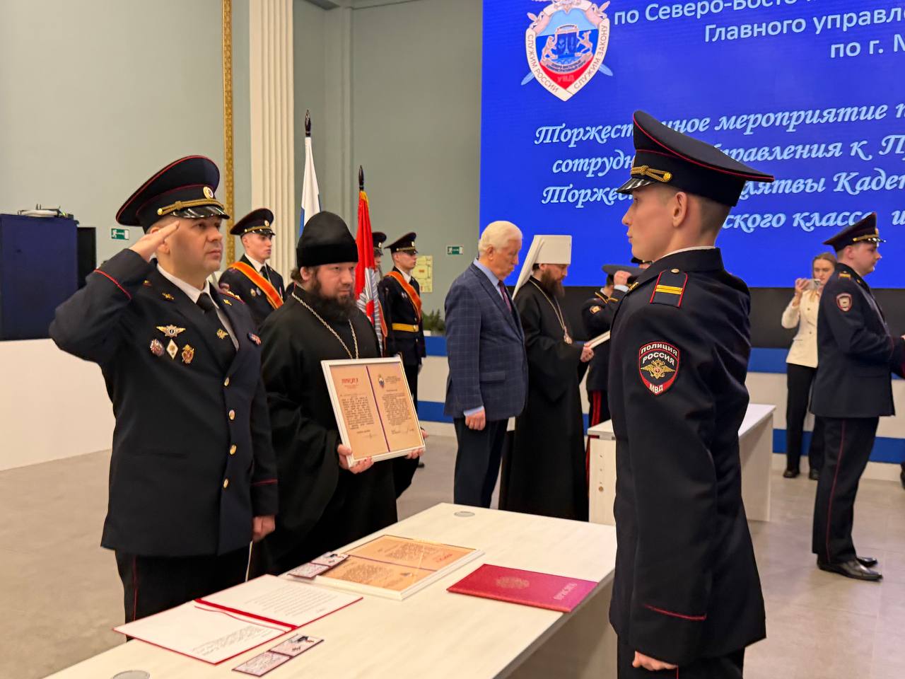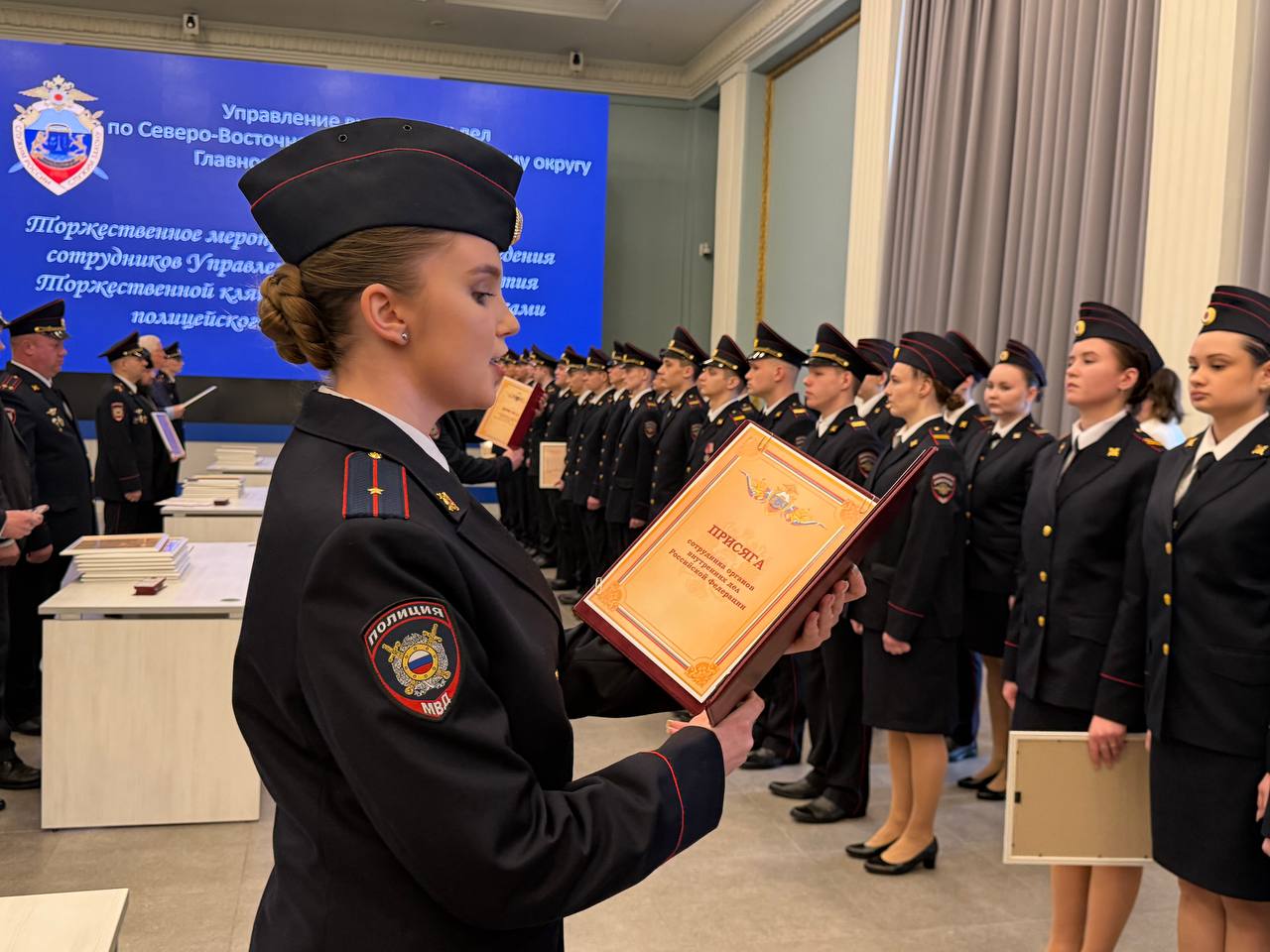 Мероприятие, объединившее сразу несколько торжественных событий, состоялось на ВДНХ. В павильоне «Космос» прошла церемония приведения к Присяге 43 молодых сотрудников УВД по СВАО ГУ МВД России по г. Москве, принятие Клятвы 25 учащимися полицейского кадетского класса школы 1499, а также вручение первых паспортов 14-летним жителям СВАО.