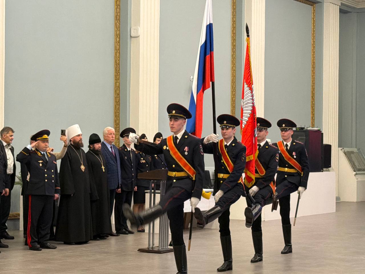 С напутственным словом к полицейским и юным кадетам обратились управляющий Северо-Восточным Московским викариатством митрополит Звенигородский Арсений и начальник УВД по СВАО ГУ МВД России по г. Москве генерал-майор полиции Рамиль Гафуров.