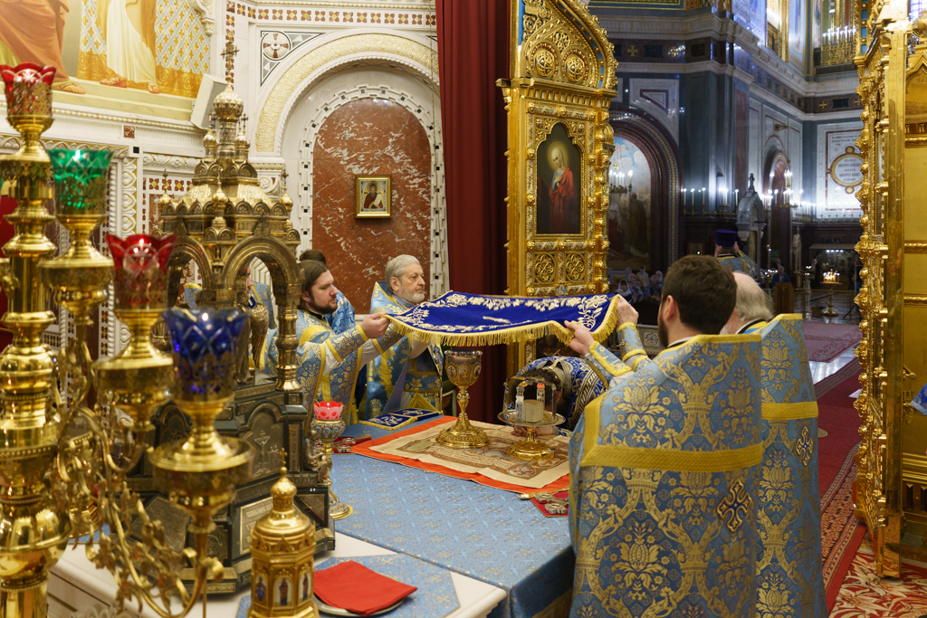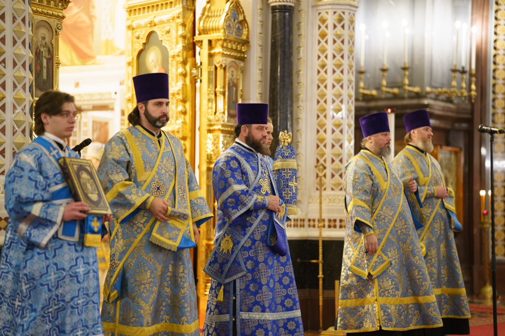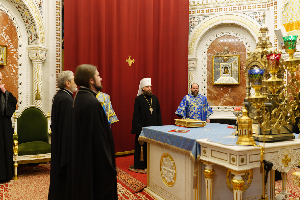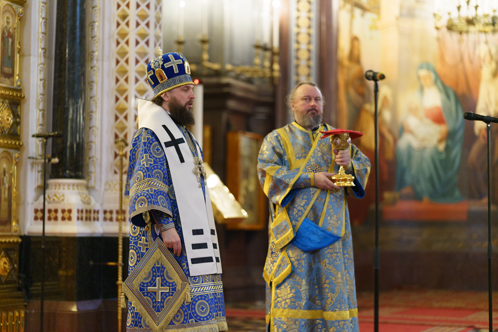 Его Высокопреосвященству сослужили: ключарь Храма Христа Спасителя протоиерей Михаил Рязанцев; клирики Храма Христа Спасителя — протоиерей Георгий Мартынов, иерей Михаил Нараевский и иерей Алексей Тимофеев, а также и.о. руководителя секретариата Северо-Восточного викариатства иерей Сергий Бычков.