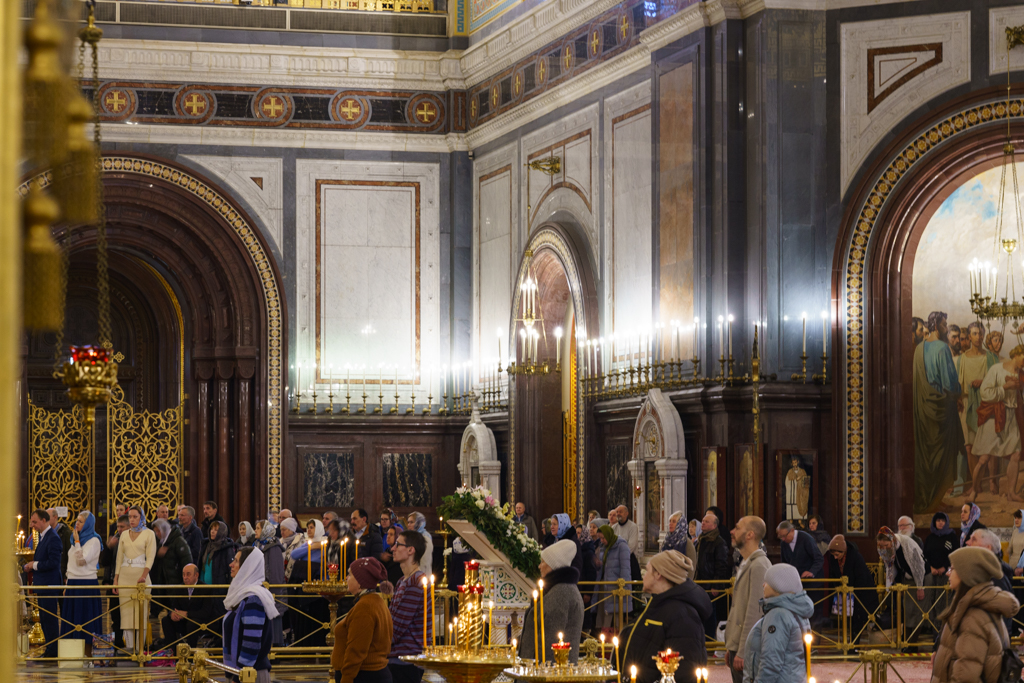 За богослужением пел Патриарший хор Храма Христа Спасителя под управлением Ильи Толкачева.