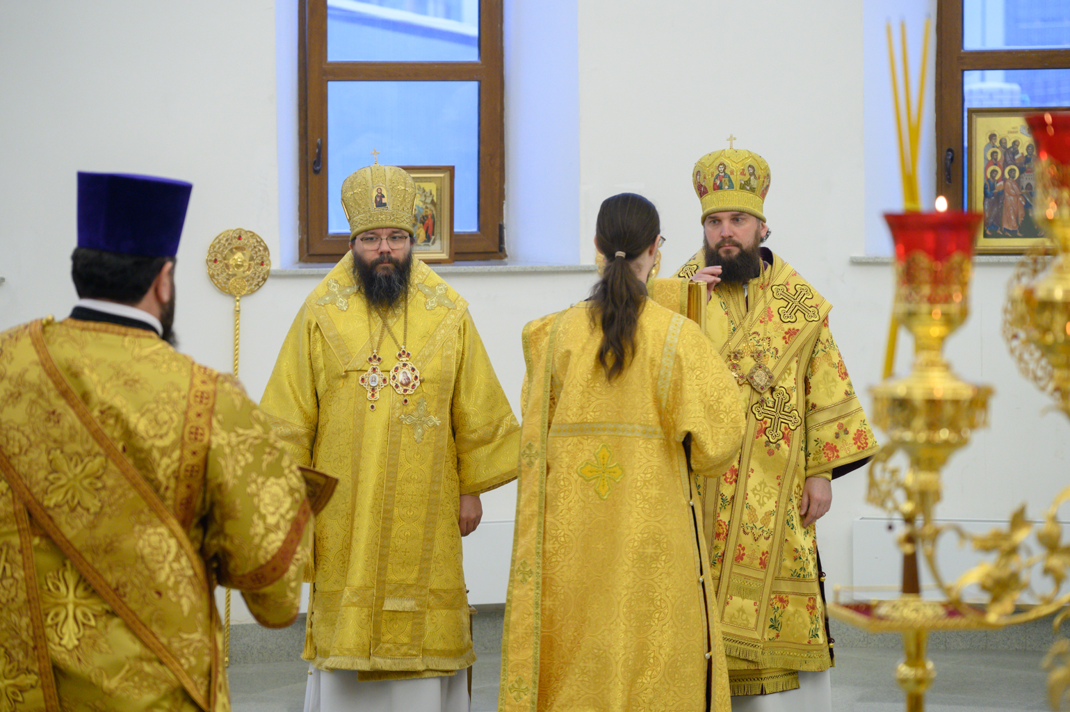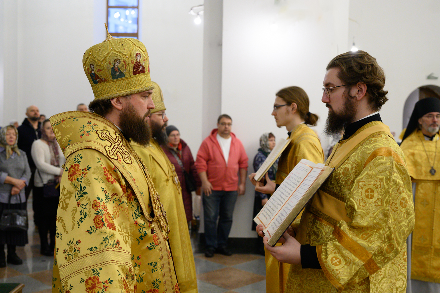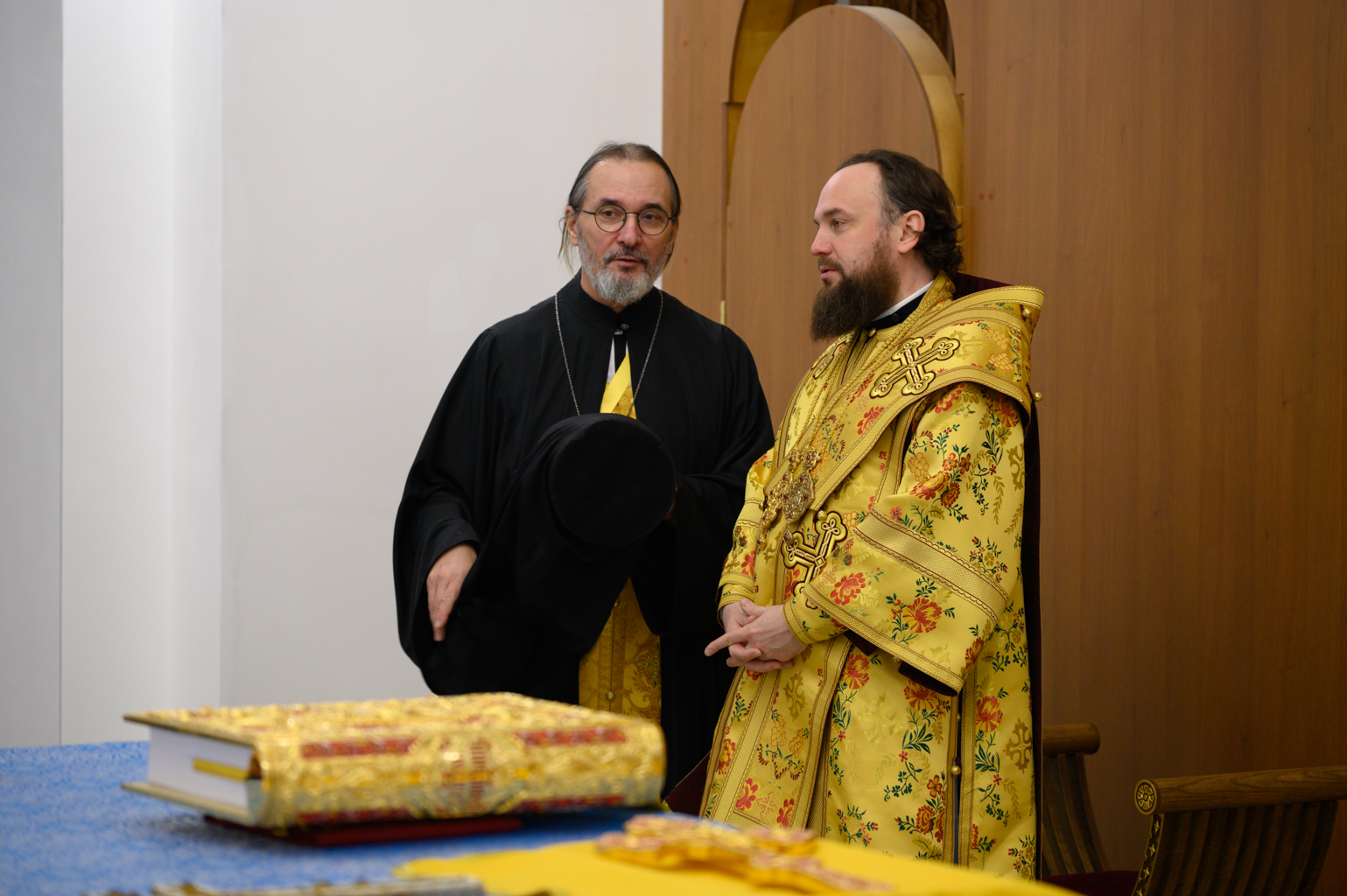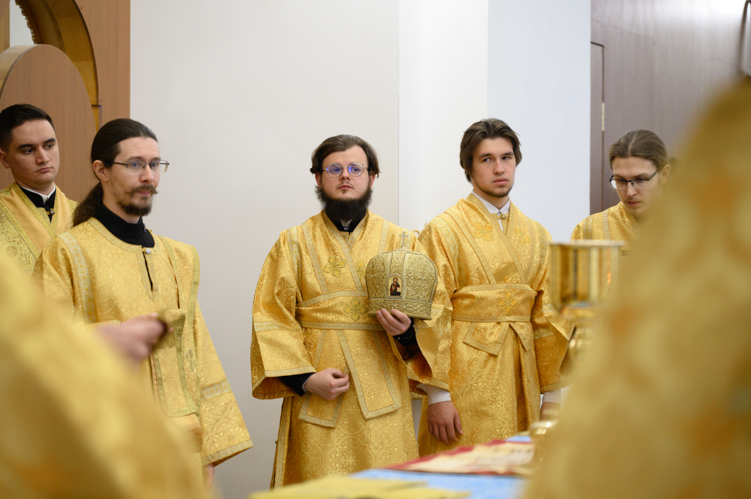 Его Высокопреосвященству сослужили: митрополит Псковский и Порховский Матфей; клирик храма Успения Пресвятой Богородицы в Останкино иерей Роман Хан; насельник Псково-Печерского монастыря, первый проректор Псково-Печерской духовной семинарии игумен Августин (Заярный); а также клирики храма Живоначальной Троицы в Усадьбе Свиблово иерей Димитрий Горбик и иерей Иоанн Кузякин.