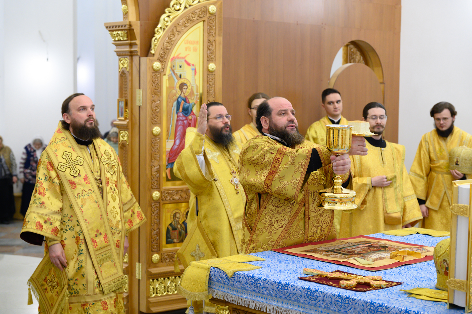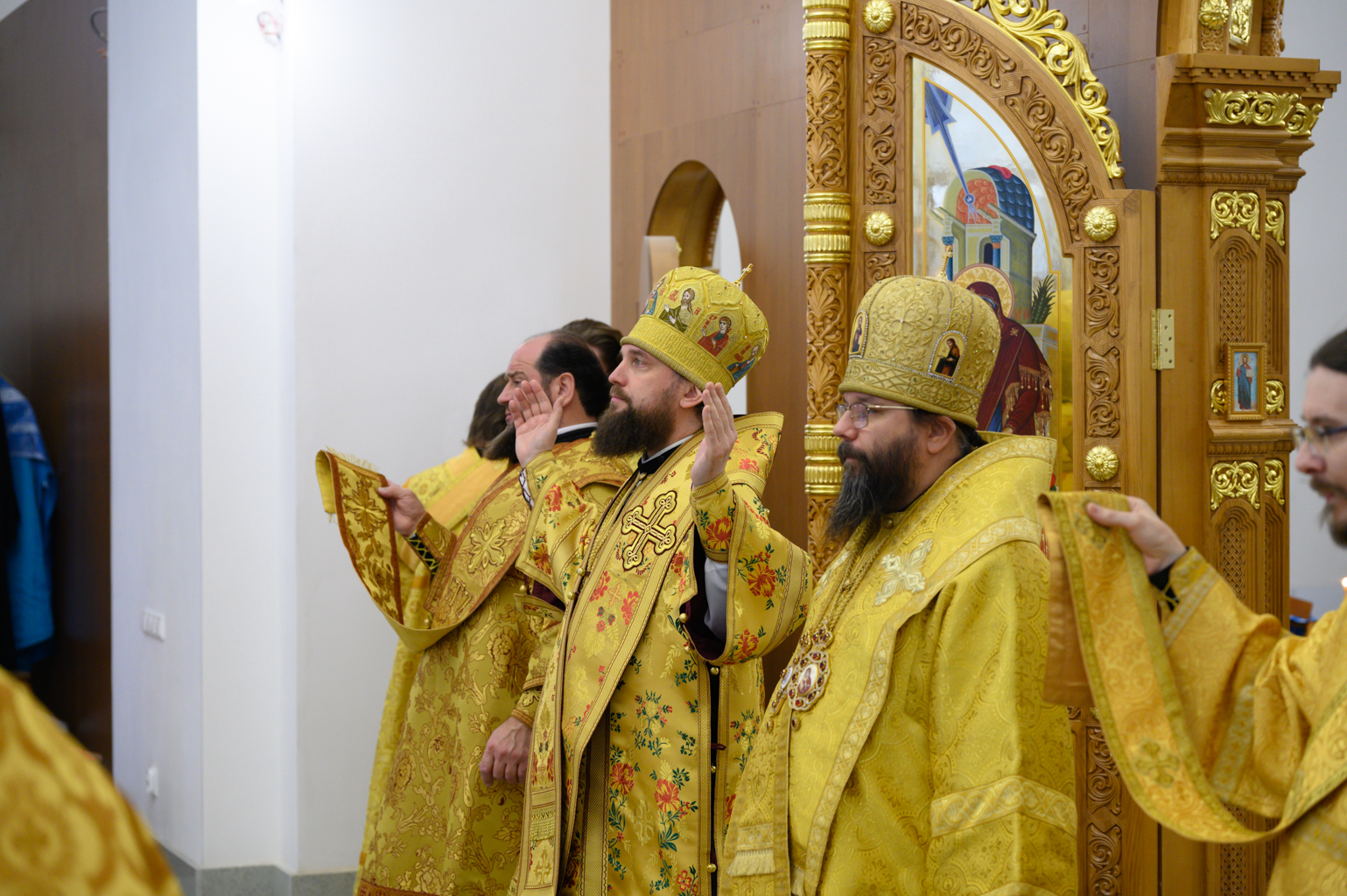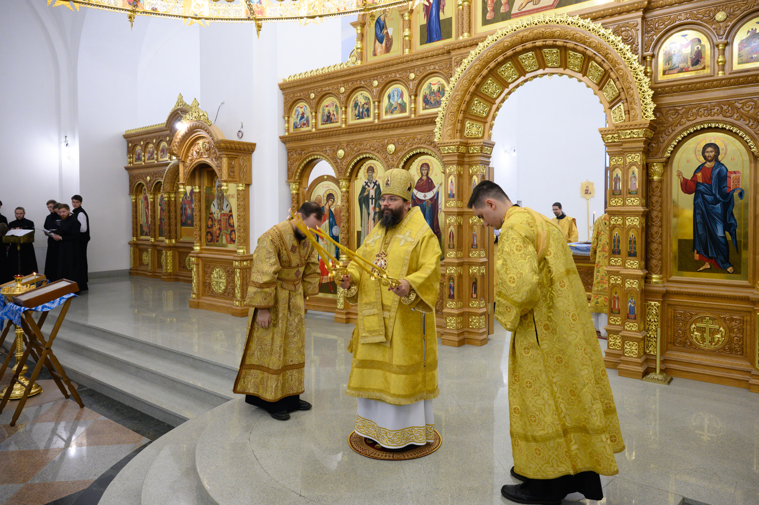 Его Высокопреосвященству сослужили: митрополит Псковский и Порховский Матфей; клирик храма Успения Пресвятой Богородицы в Останкино иерей Роман Хан; насельник Псково-Печерского монастыря, первый проректор Псково-Печерской духовной семинарии игумен Августин (Заярный); а также клирики храма Живоначальной Троицы в Усадьбе Свиблово иерей Димитрий Горбик и иерей Иоанн Кузякин.