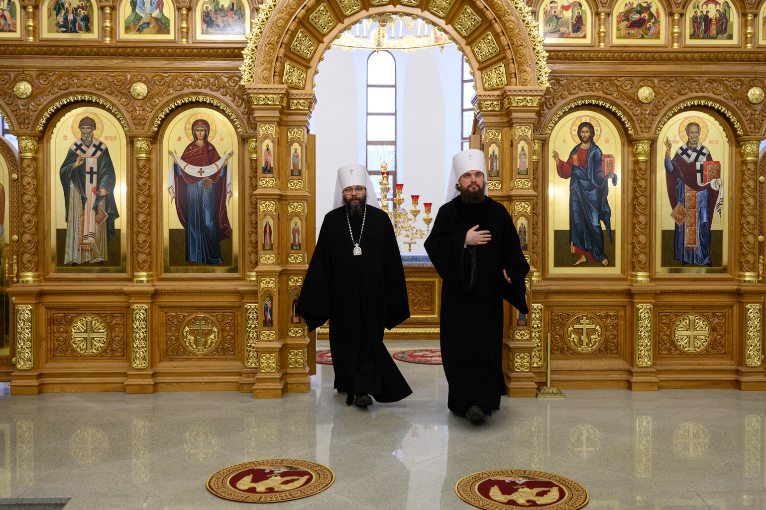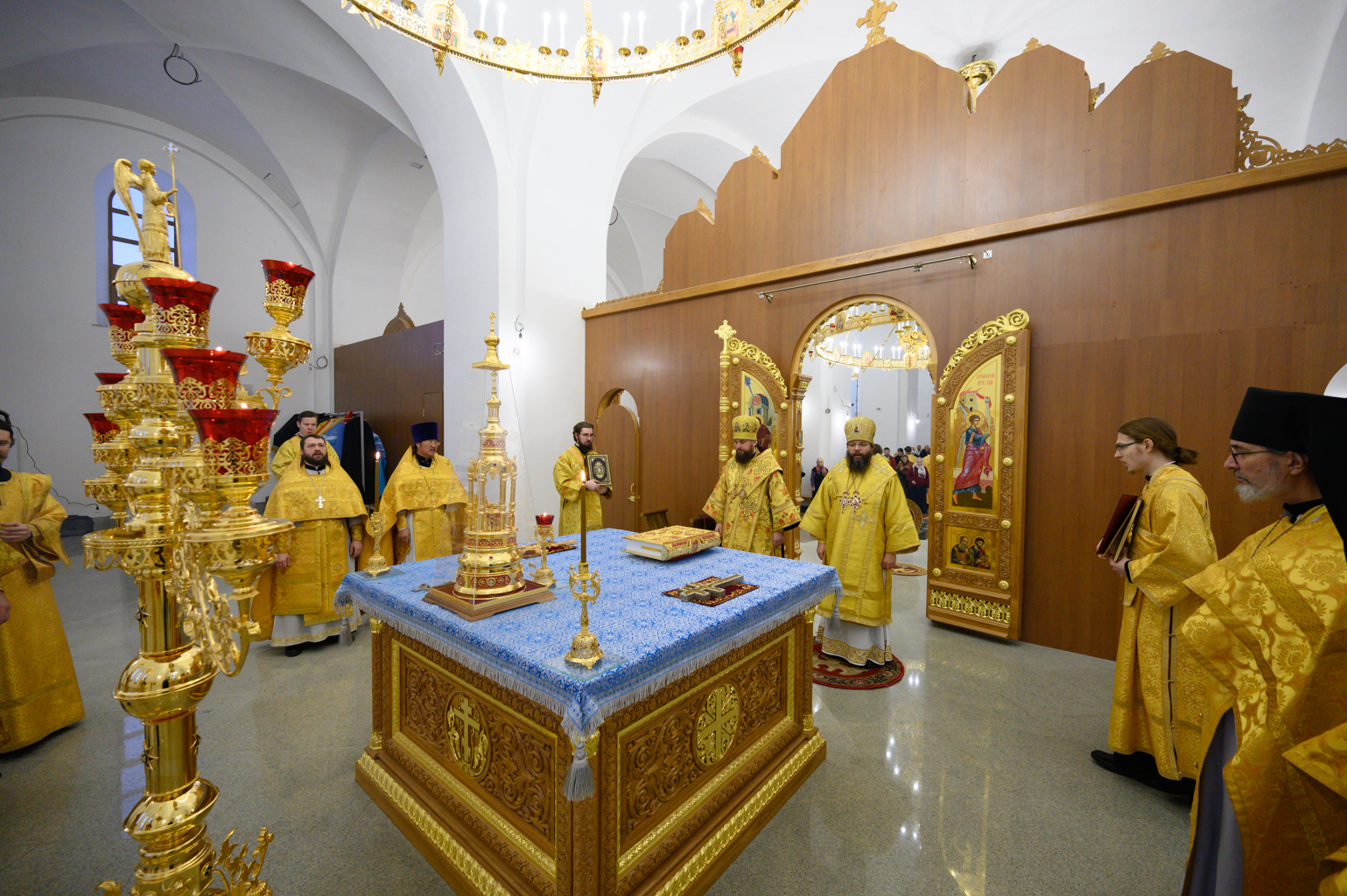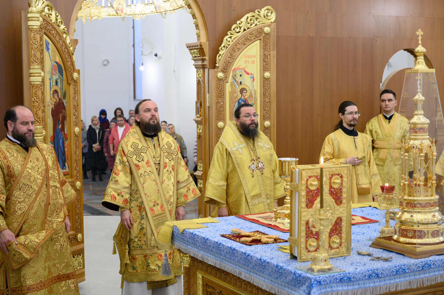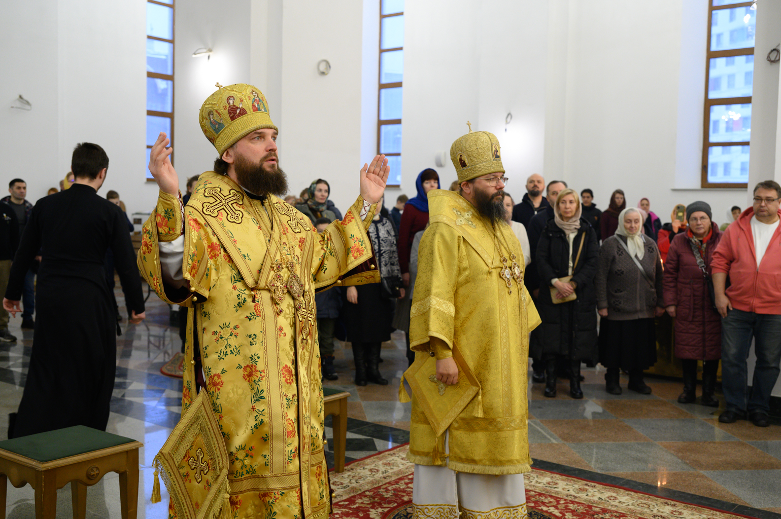 Его Высокопреосвященству сослужили: митрополит Псковский и Порховский Матфей; клирик храма Успения Пресвятой Богородицы в Останкино иерей Роман Хан; насельник Псково-Печерского монастыря, первый проректор Псково-Печерской духовной семинарии игумен Августин (Заярный); а также клирики храма Живоначальной Троицы в Усадьбе Свиблово иерей Димитрий Горбик и иерей Иоанн Кузякин.