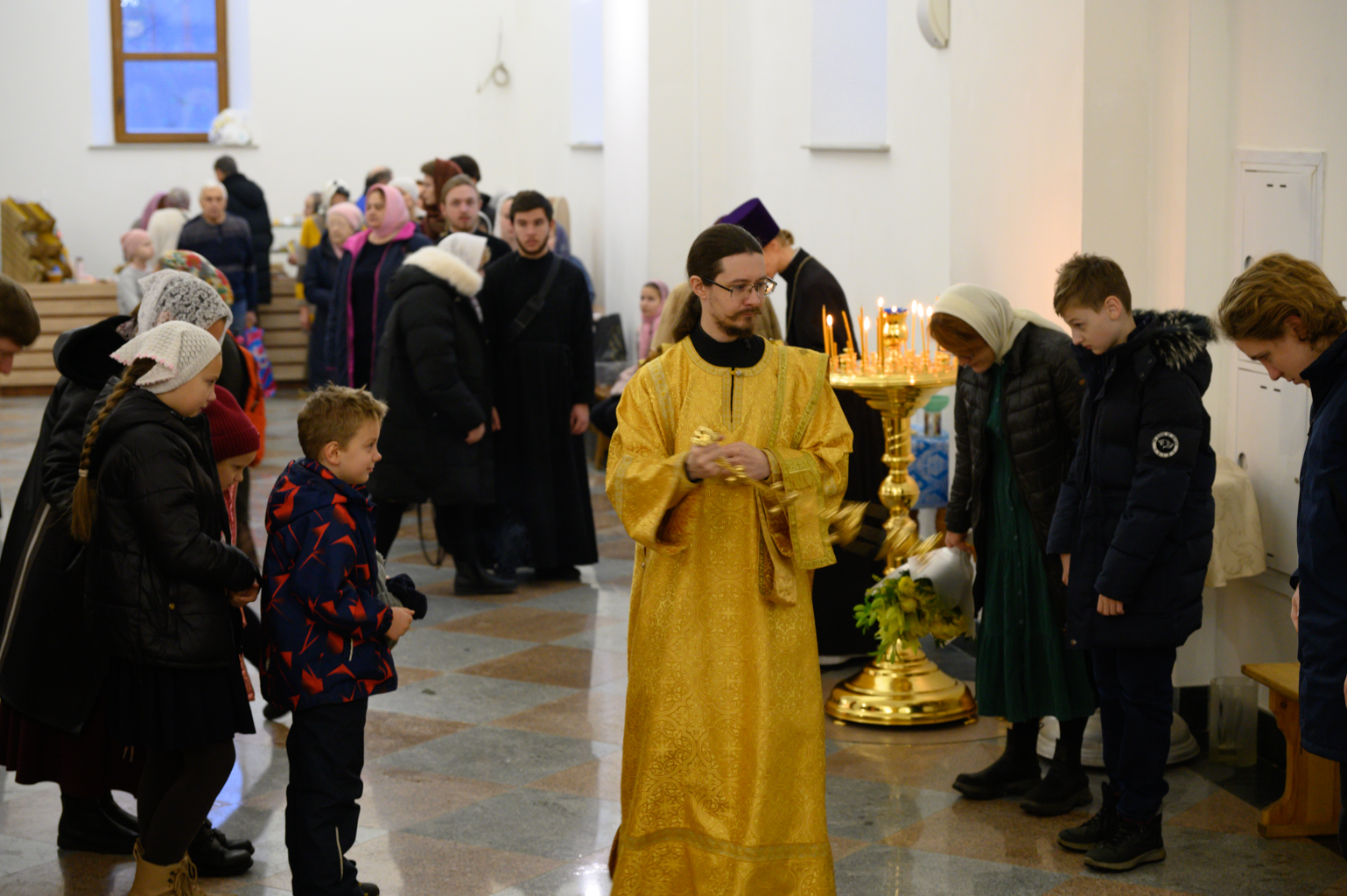 За богослужением молились многочисленные прихожане храма, а также группа семинаристов Псково-Печерской духовной семинарии.