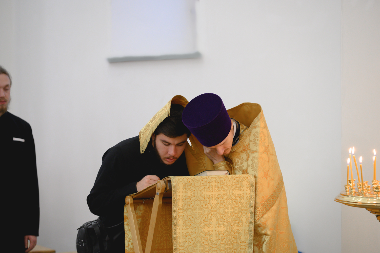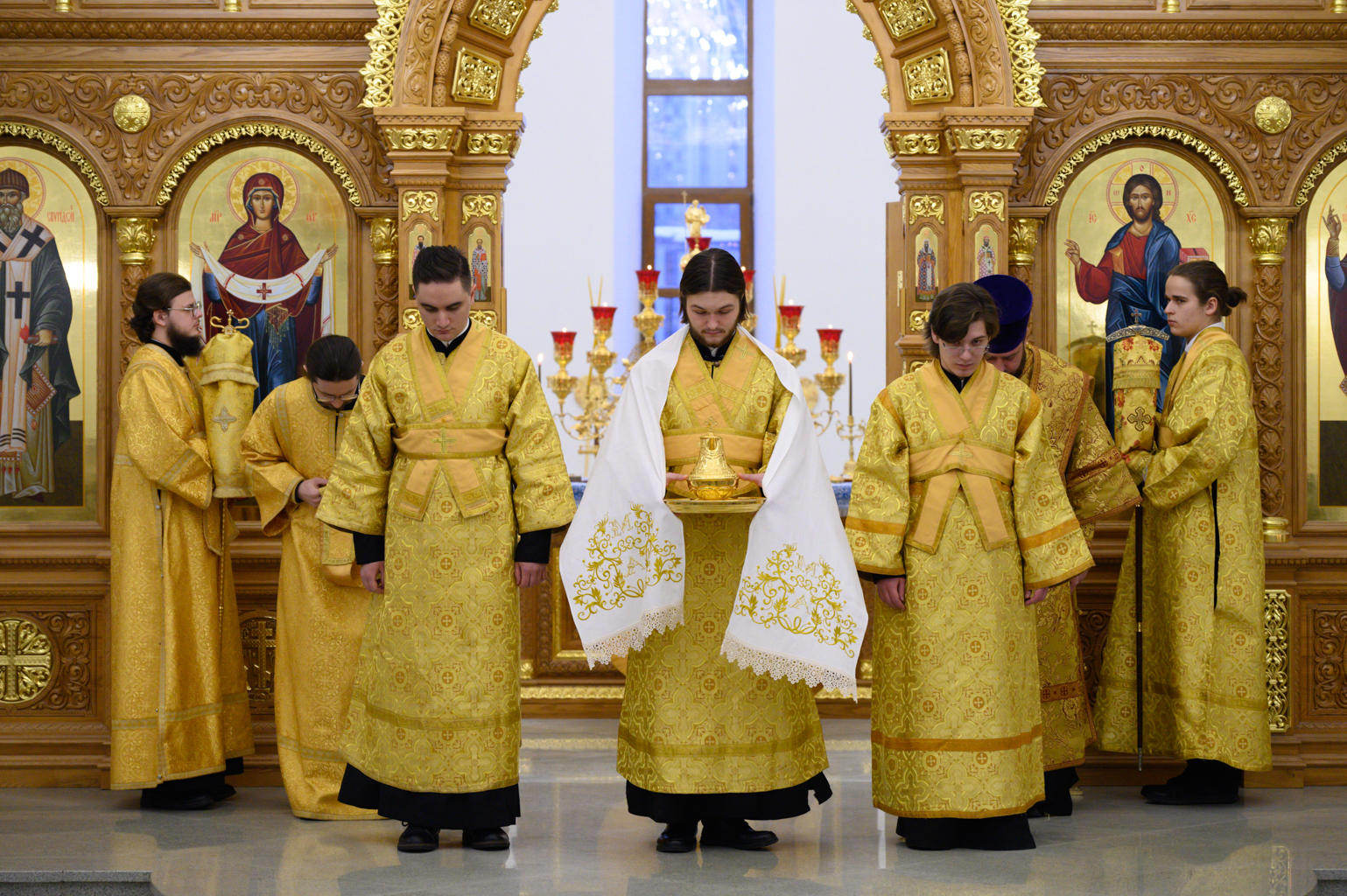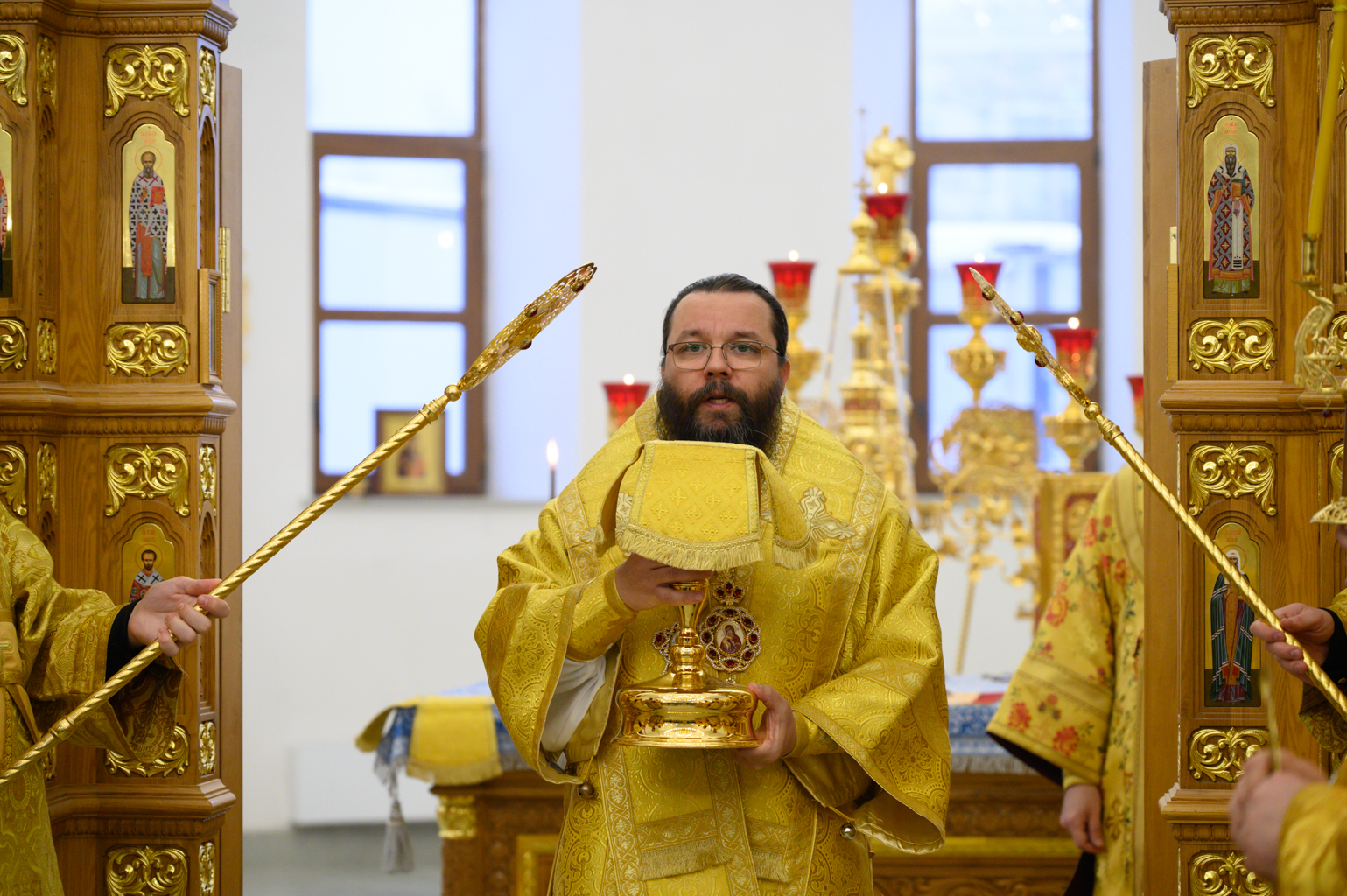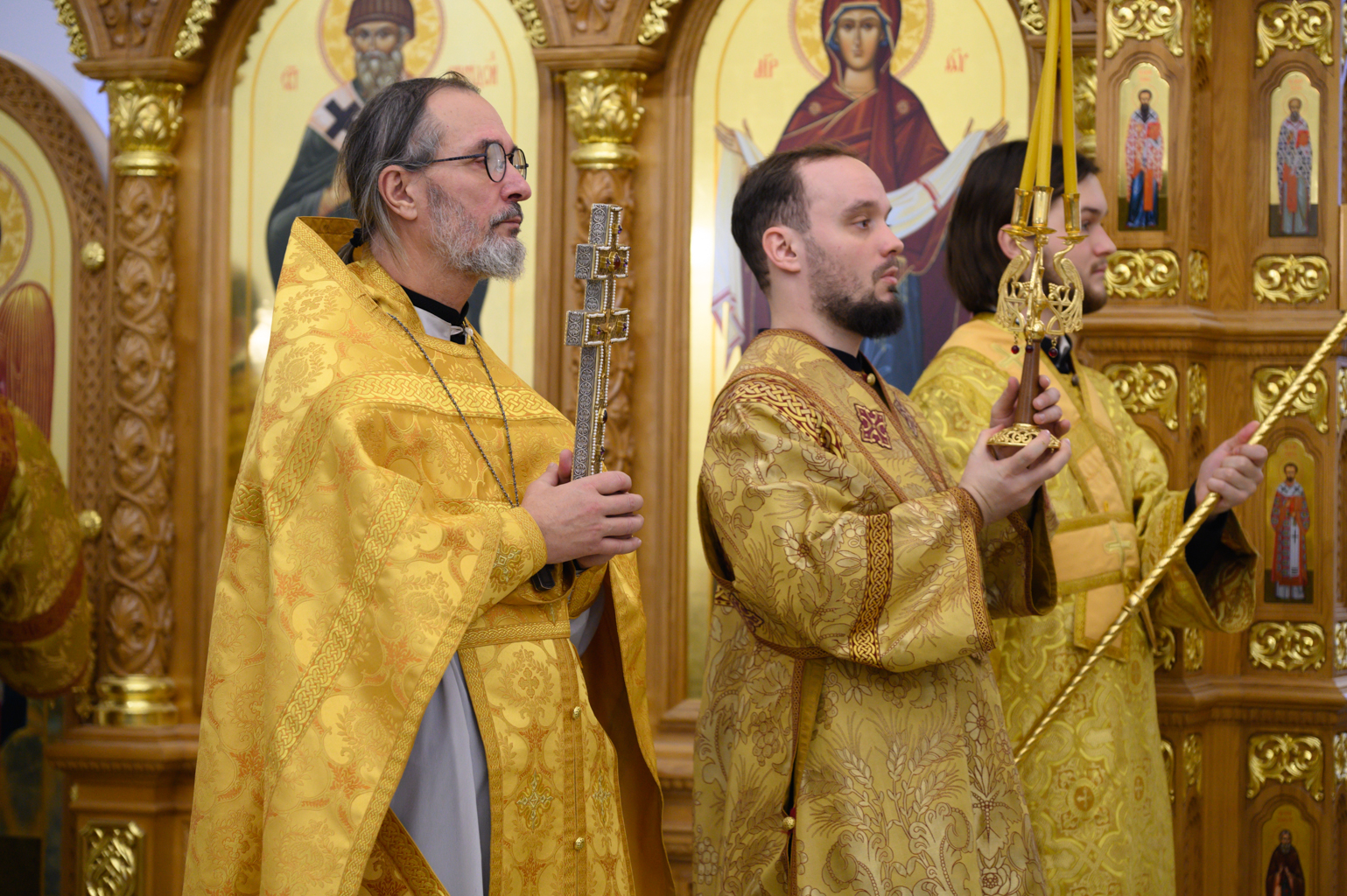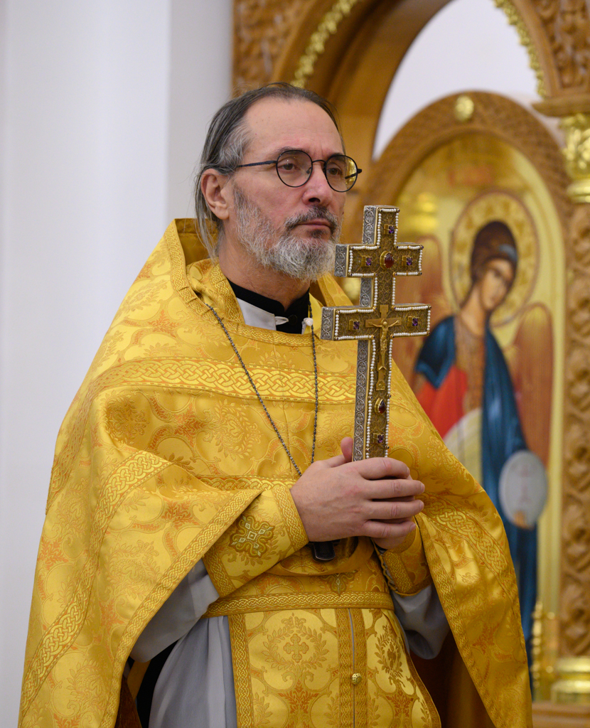 Диаконский чин возглавил протодиакон Василий Куфлик, клирик храма Тихвинской иконы Божией Матери, Патриаршего подворья в Алексеевском города Москвы.