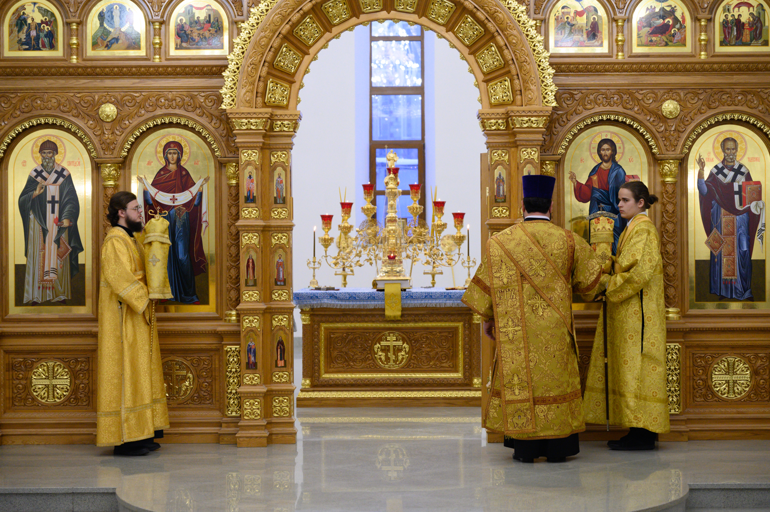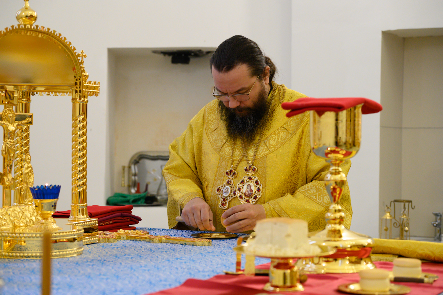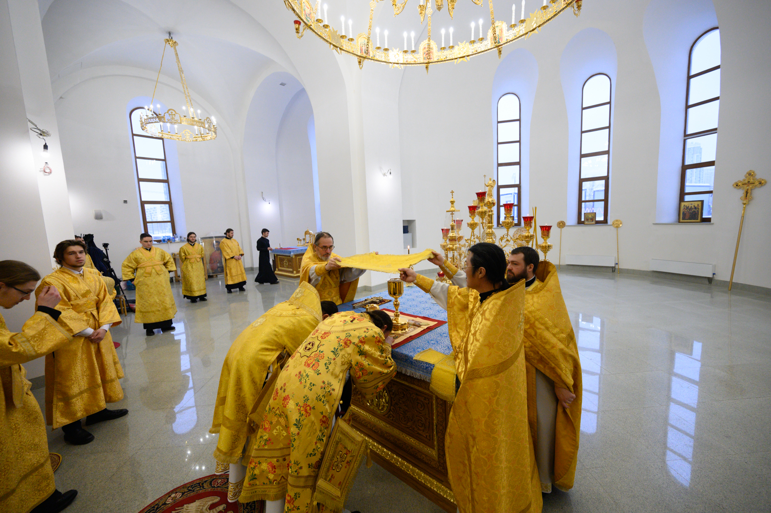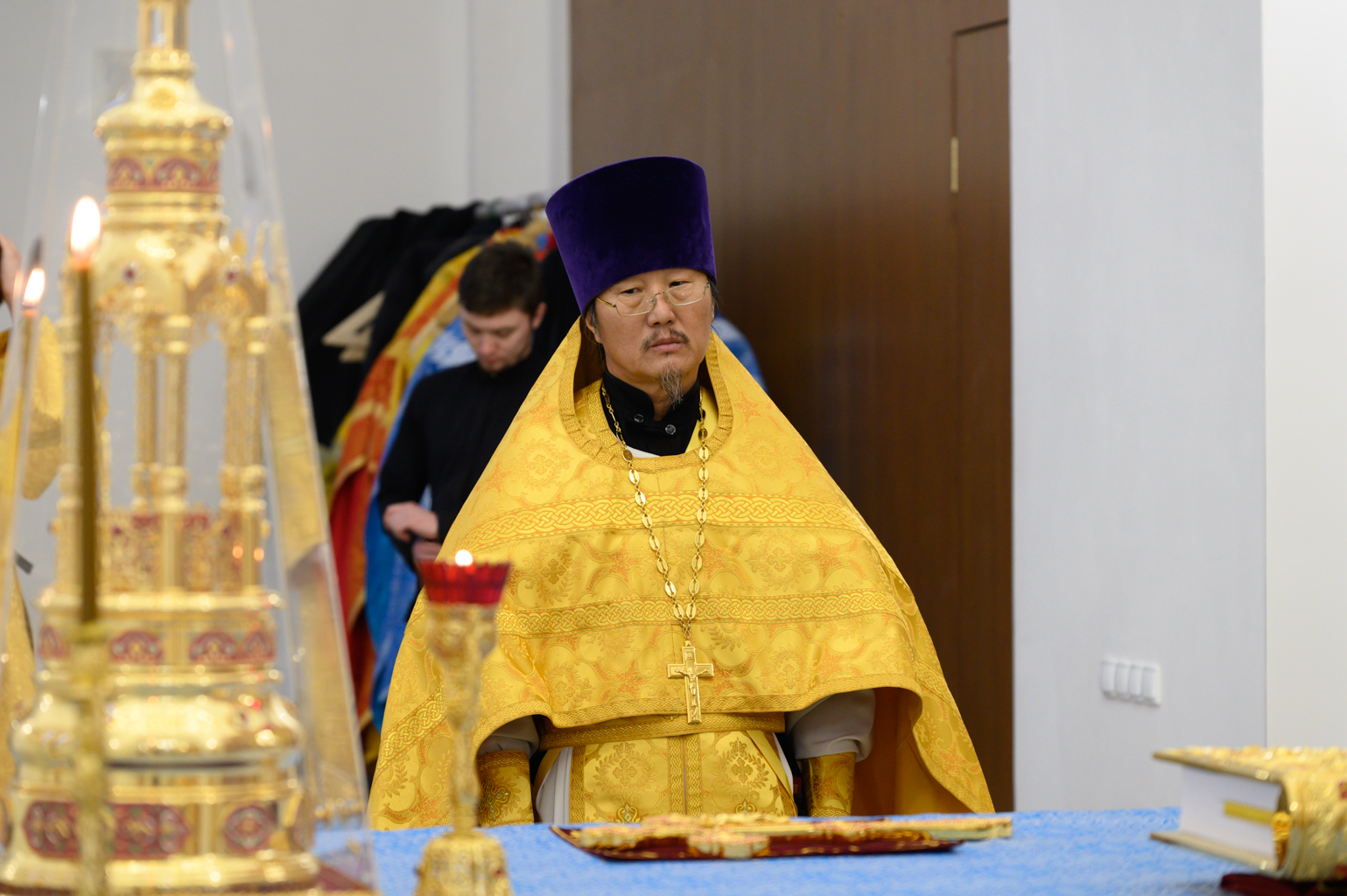 Диаконский чин возглавил протодиакон Василий Куфлик, клирик храма Тихвинской иконы Божией Матери, Патриаршего подворья в Алексеевском города Москвы.