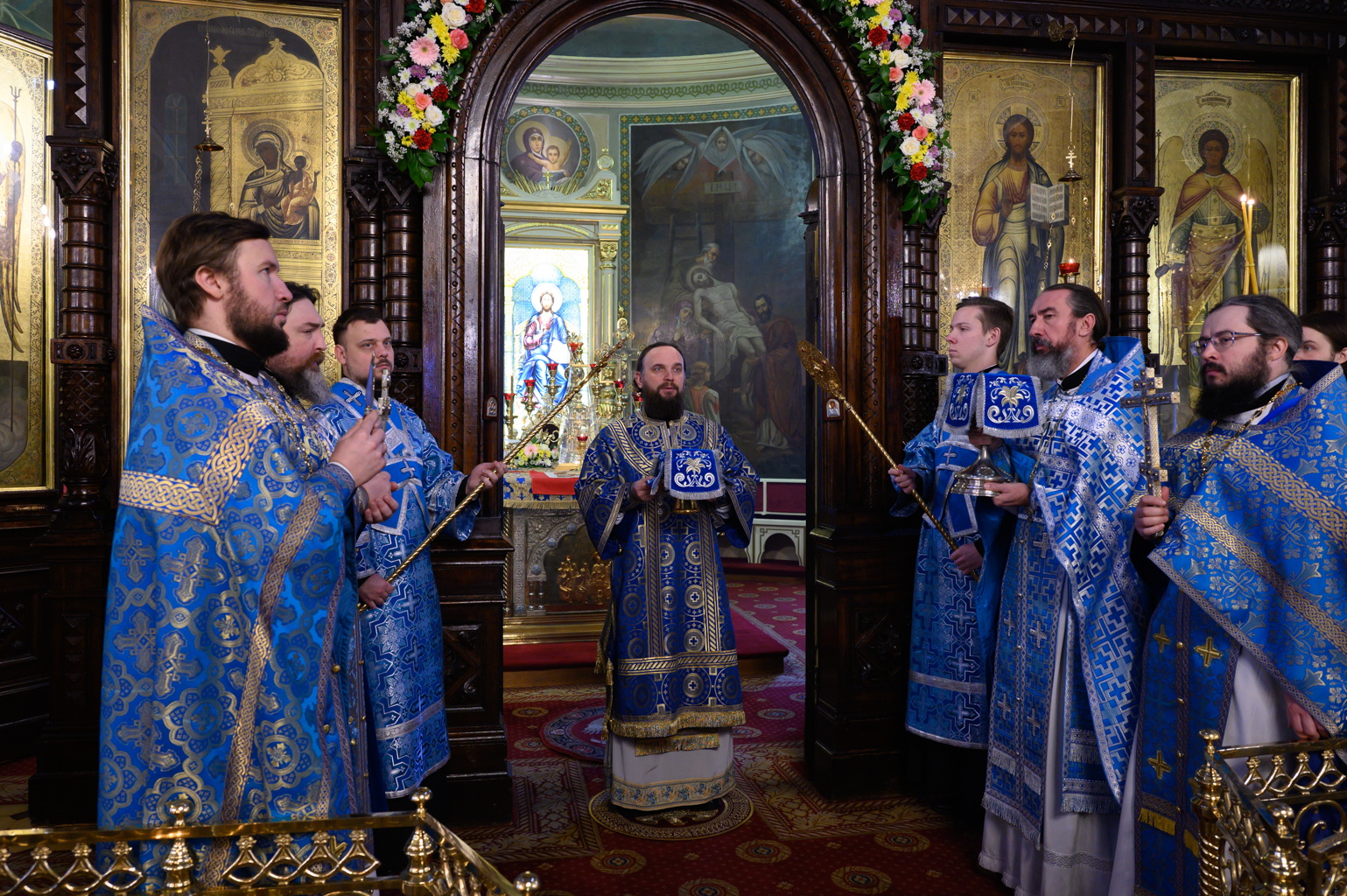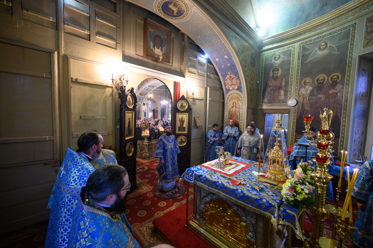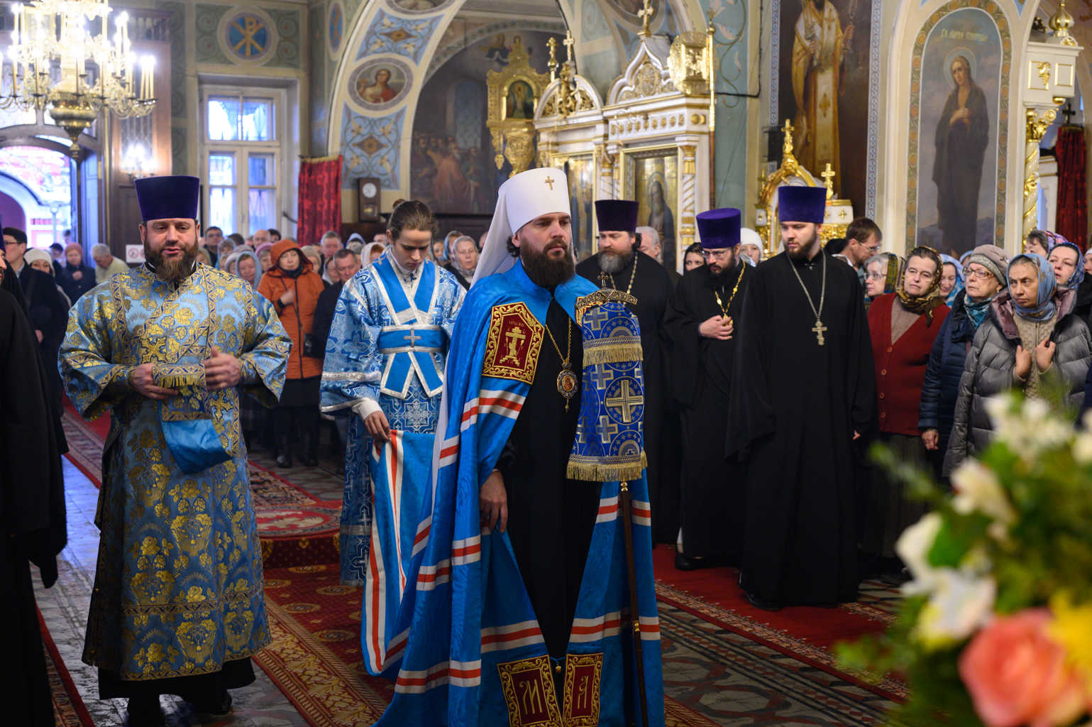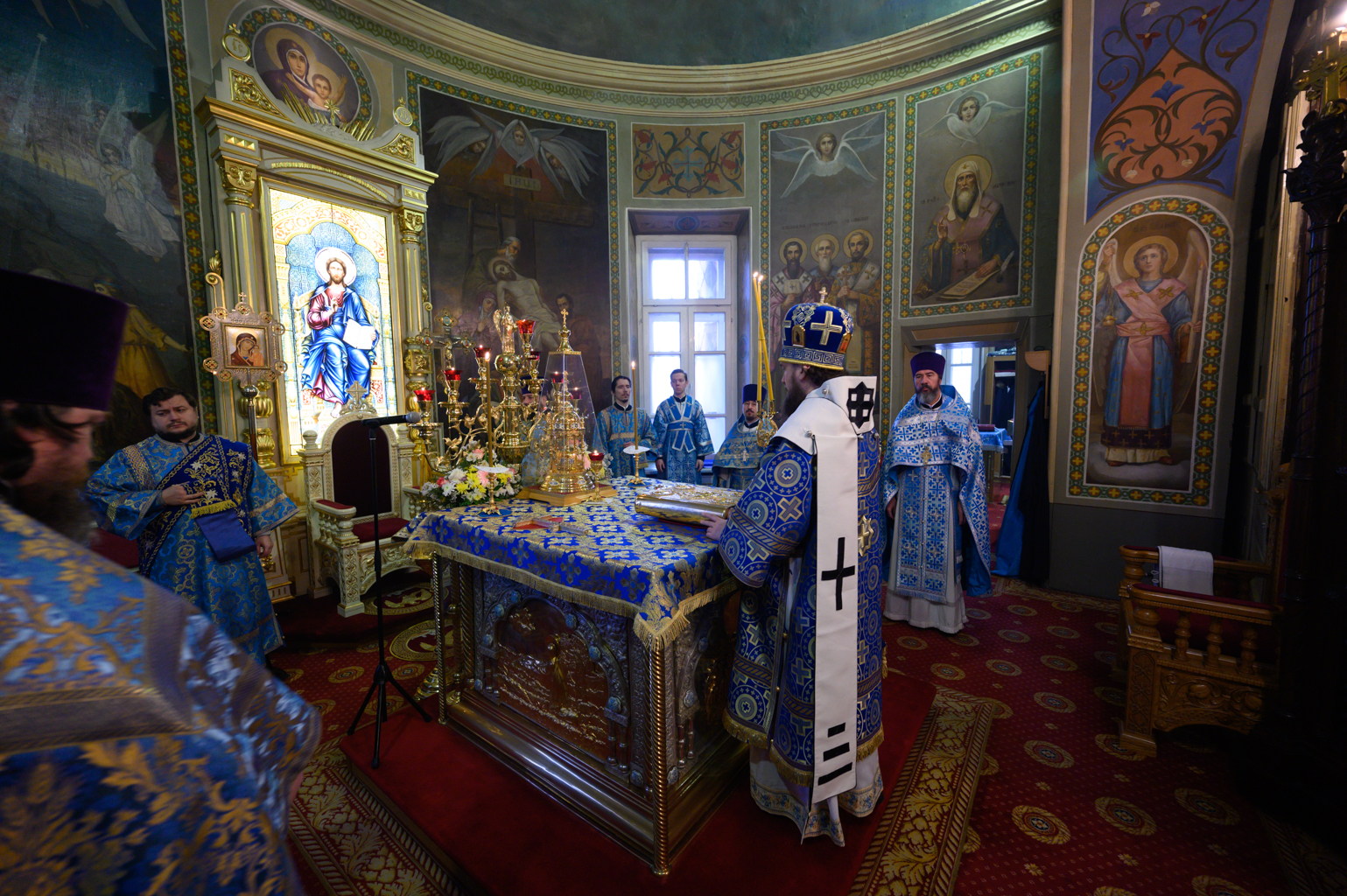 После отпуста духовенство во главе с архипастырем совершили величание перед образом Пресвятой Богородицы «Нечаянная Радость».