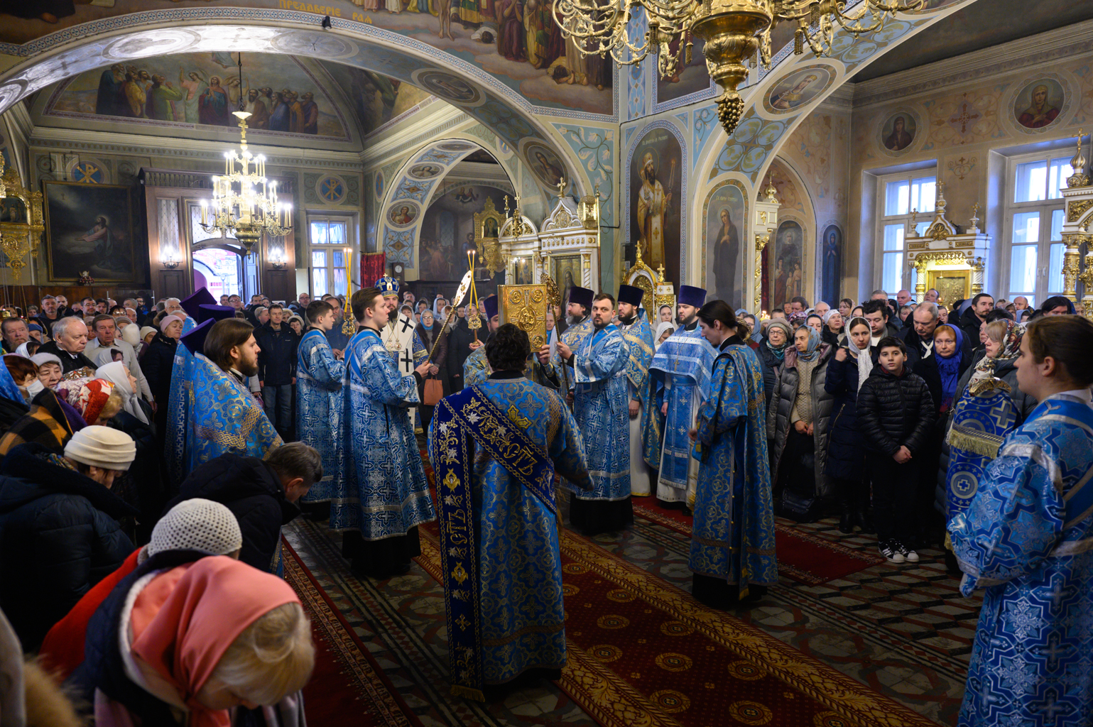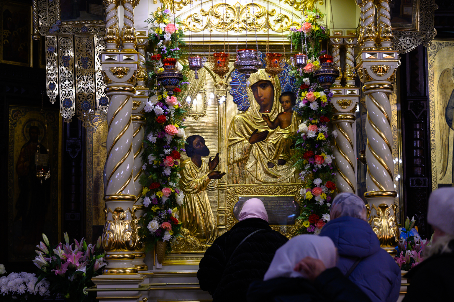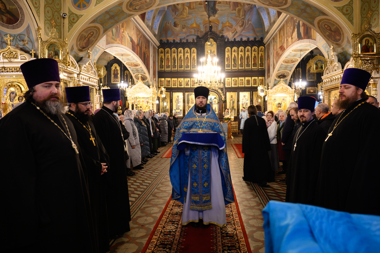 После отпуста духовенство во главе с архипастырем совершили величание перед образом Пресвятой Богородицы «Нечаянная Радость».