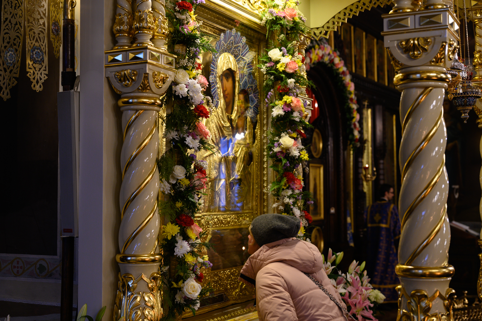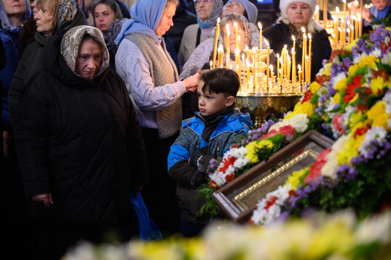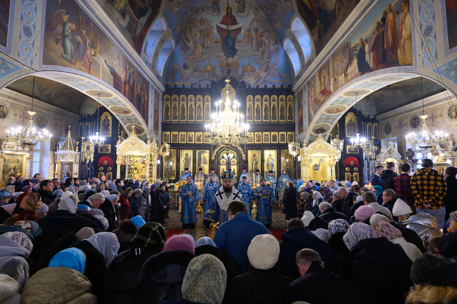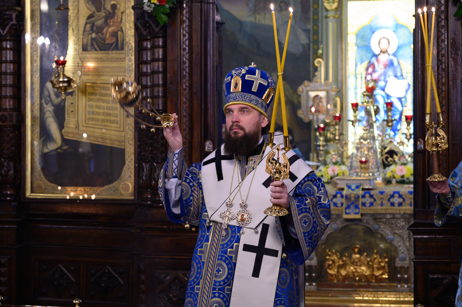 После отпуста духовенство во главе с архипастырем совершили величание перед образом Пресвятой Богородицы «Нечаянная Радость».