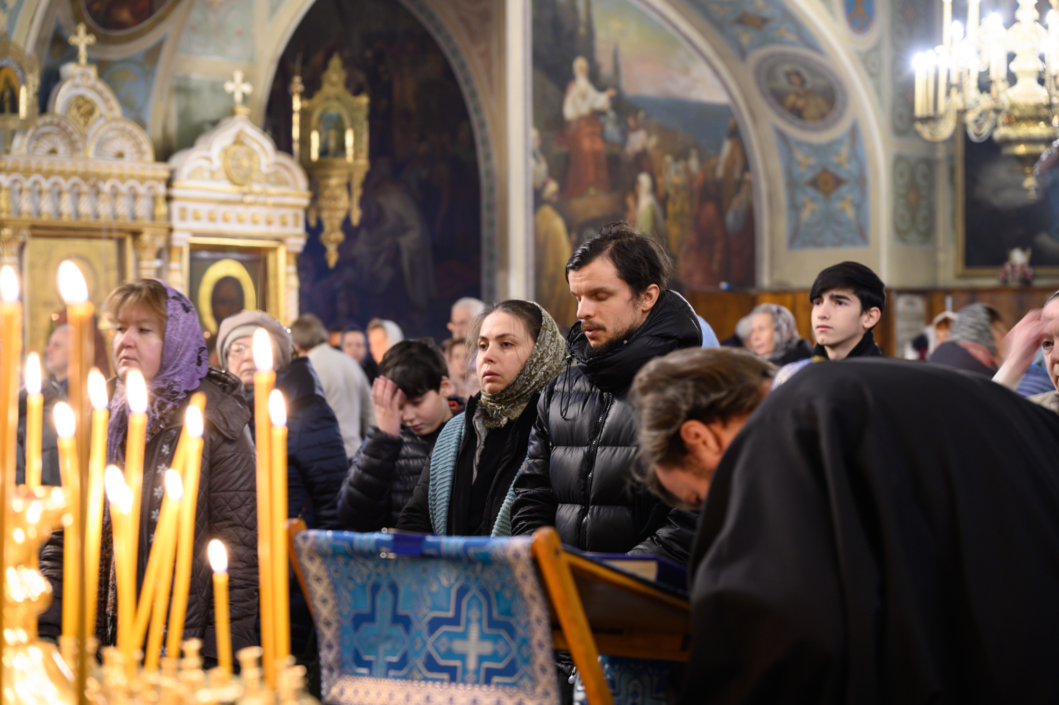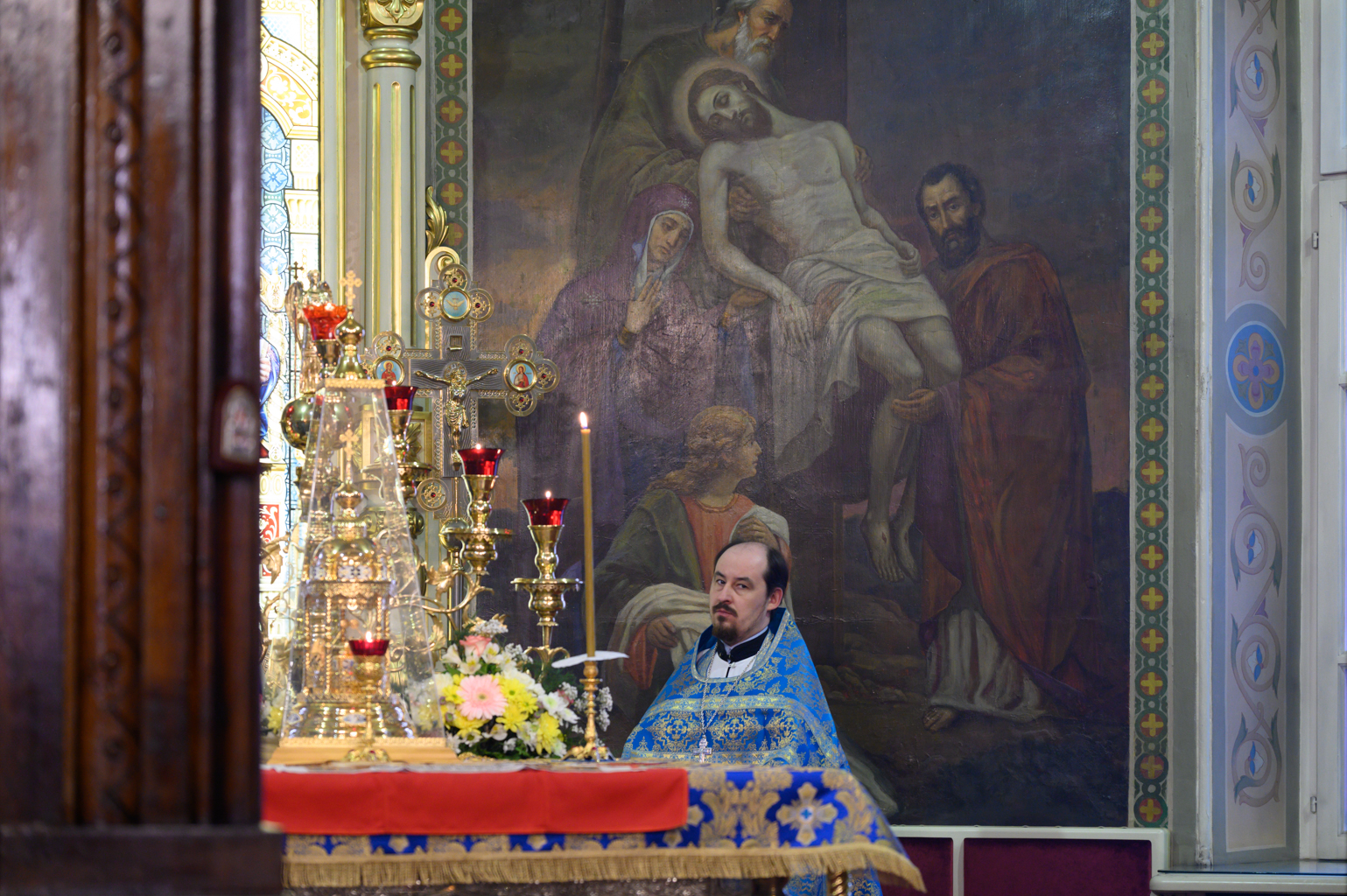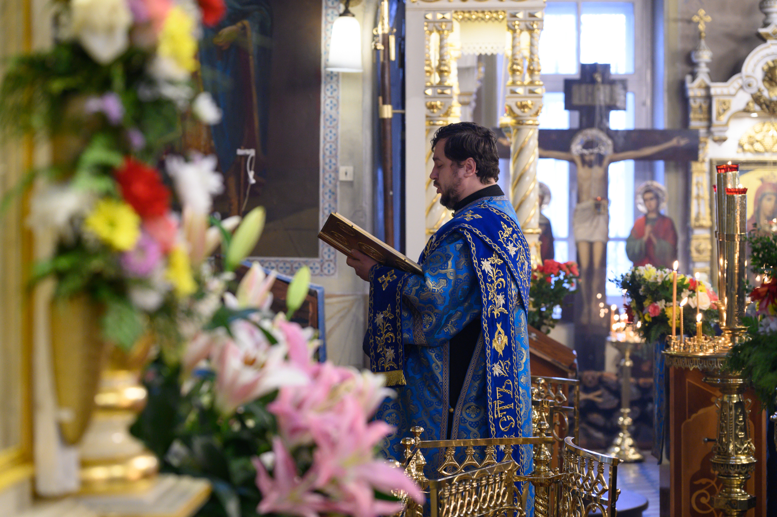 На запричастном стихе с проповедью к молящимся обратился клирик храма иконы Божией Матери «Нечаянная Радость» в Марьиной Роще протоиерей Кирилл Шевцов.