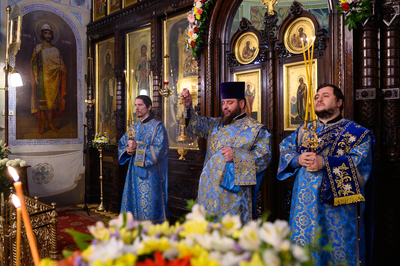 Диаконский чин возглавил протодиакон Василий Куфлик, клирик храма Тихвинской иконы Божией Матери, Патриаршего подворья в Алексеевском города Москвы.